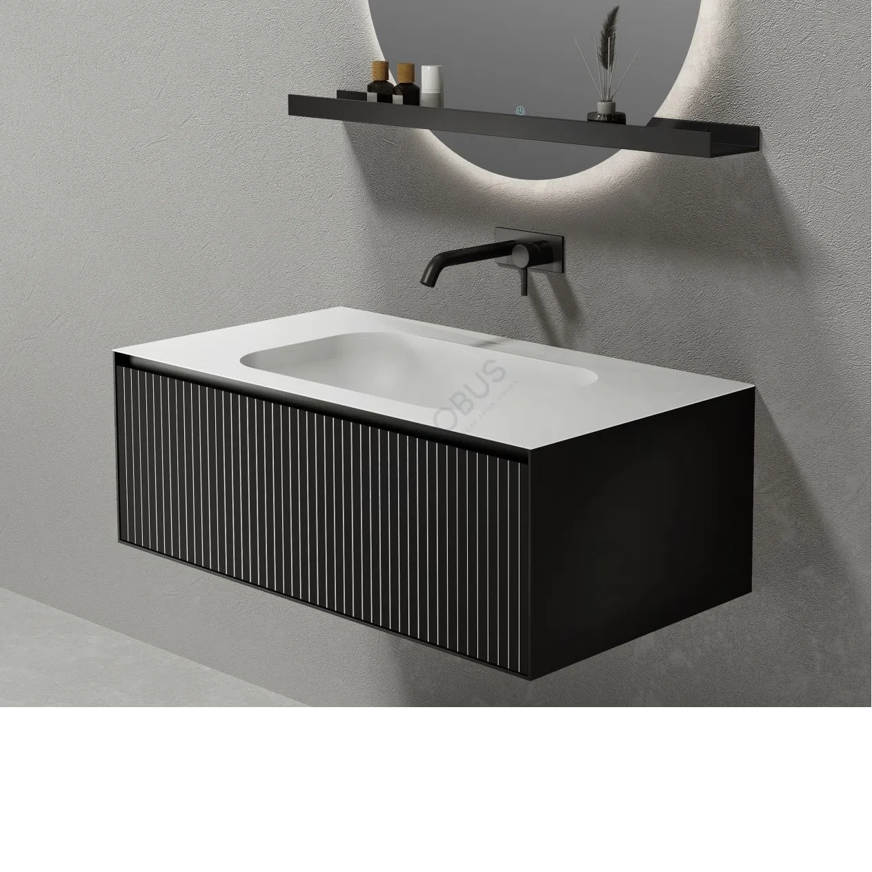 Designed specifically for the bathroom environment, this combination of mirror and shelf provides practical utility without compromising on style. It is a considered addition that enhances the user experience and contributes to a well-organized and visually appealing space.