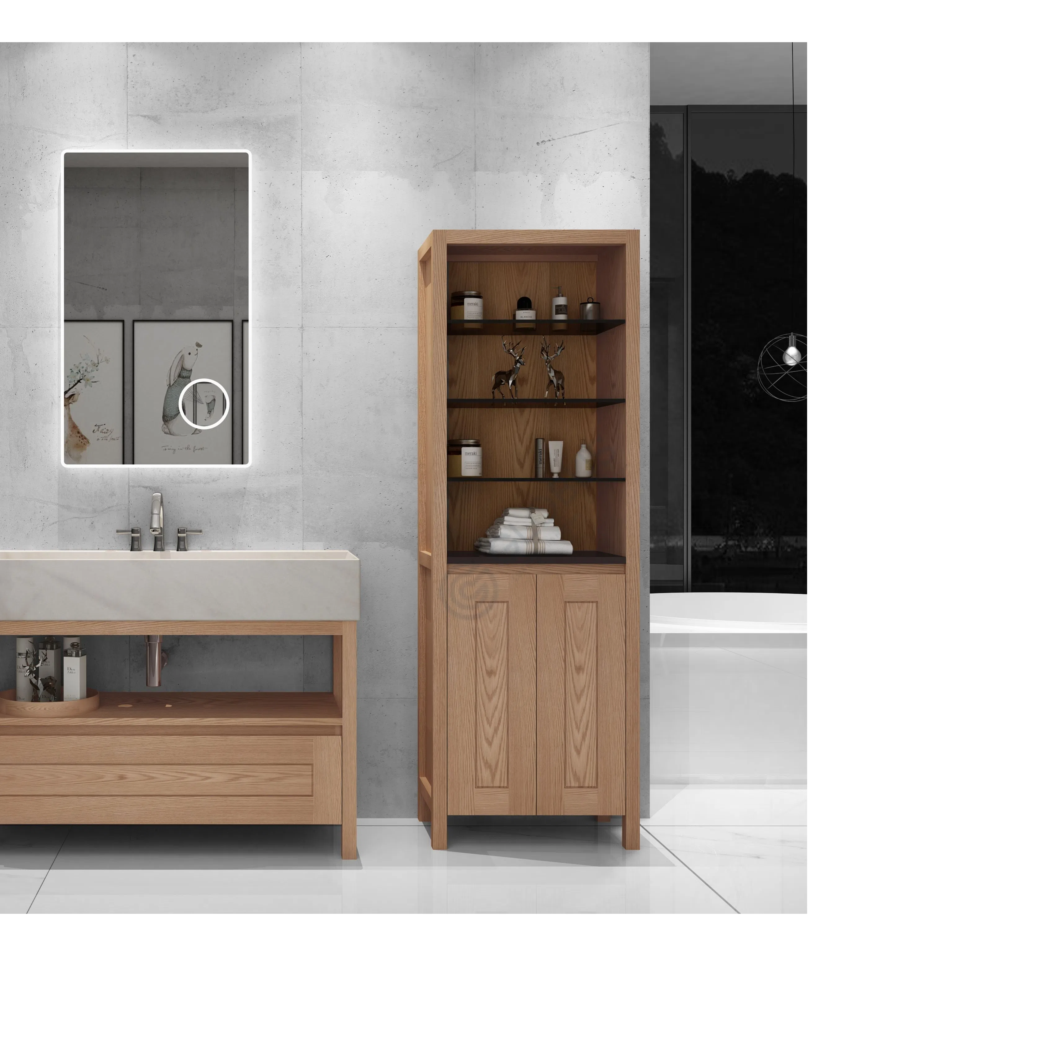 Transform your bathroom into an elegant, organized space with our premium bathroom cabinets. Crafted from solid wood and complemented with a natural marble top, these cabinets offer a perfect blend of beauty and functionality. The rich texture of the wood adds warmth and sophistication to your bathroom, while the marble top exudes a timeless appeal. The open shelves provide ample space for your essentials, and the sturdy construction ensures durability. Elevate your bathroom's style with these cabinets, designed to bring both utility and upscale charm to your home.
