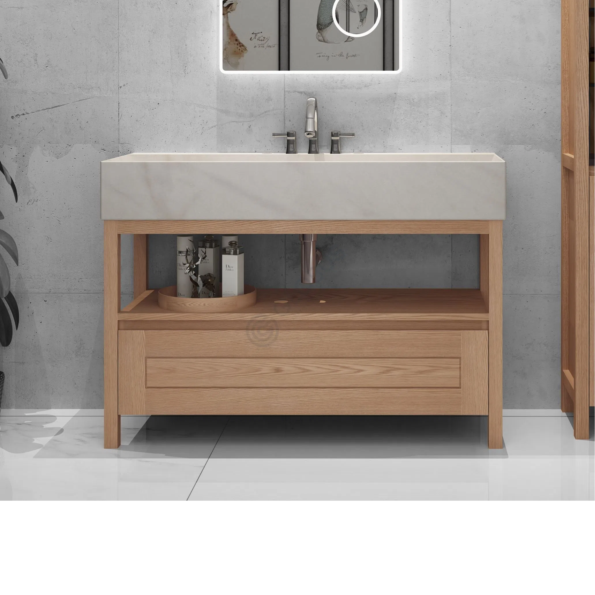 The ample storage space ensures that all your bathroom essentials are beautifully organized and easily accessible. With shelves to display decorative items or store toiletries, and enclosed spaces for a clutter-free look, your bathroom will achieve a perfect balance of style and functionality.
