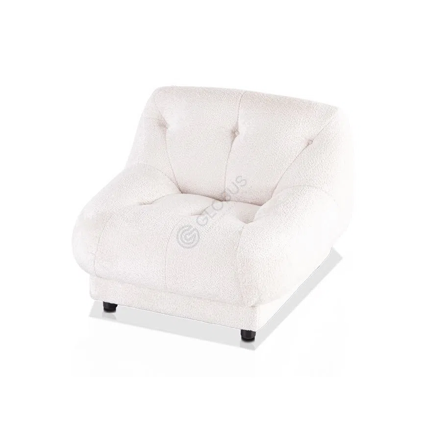 Crafted with quality materials, the structure is built from solid wood and plywood, providing a durable and stable base. The plush comfort comes from a feather filling, ensuring a soft and welcoming seat.
