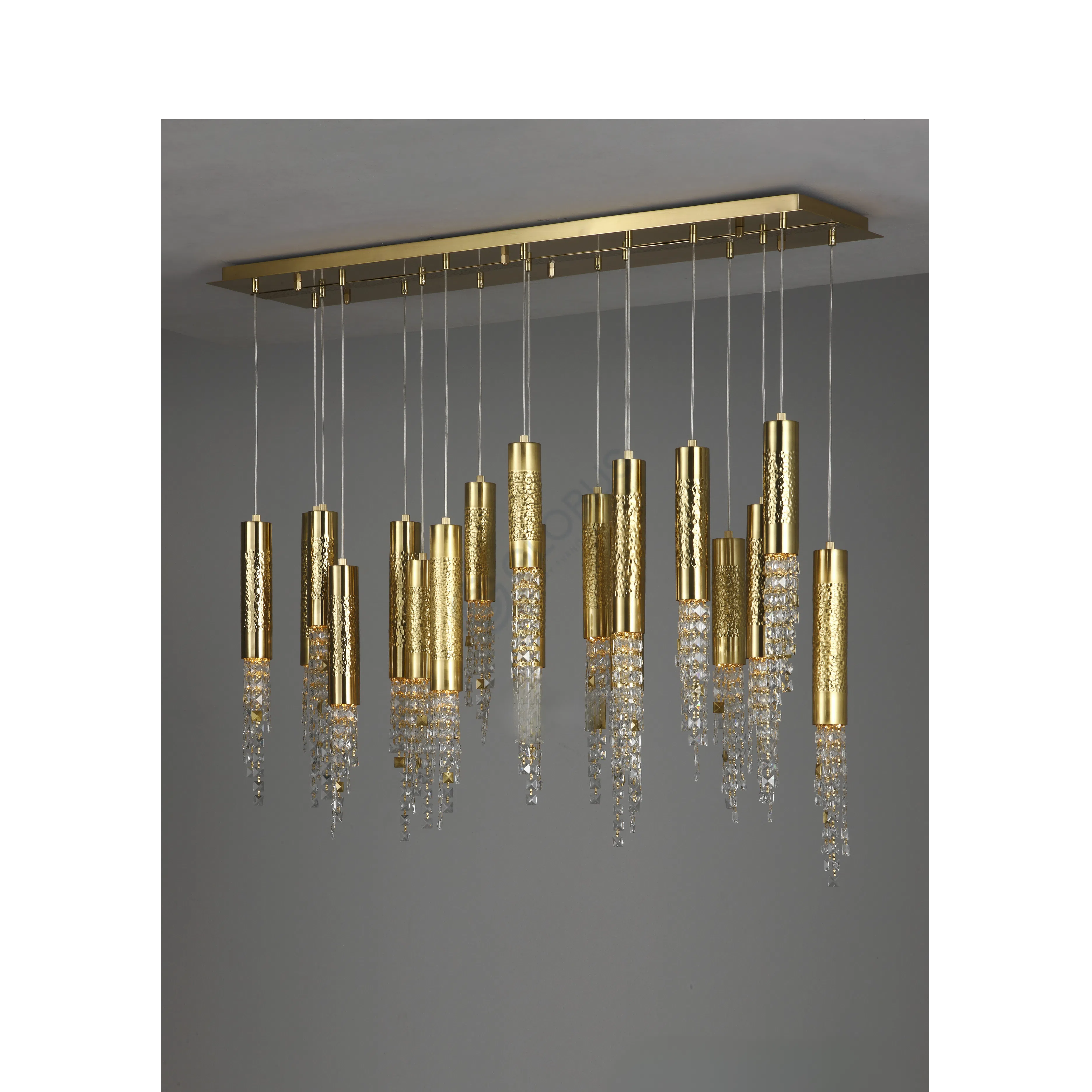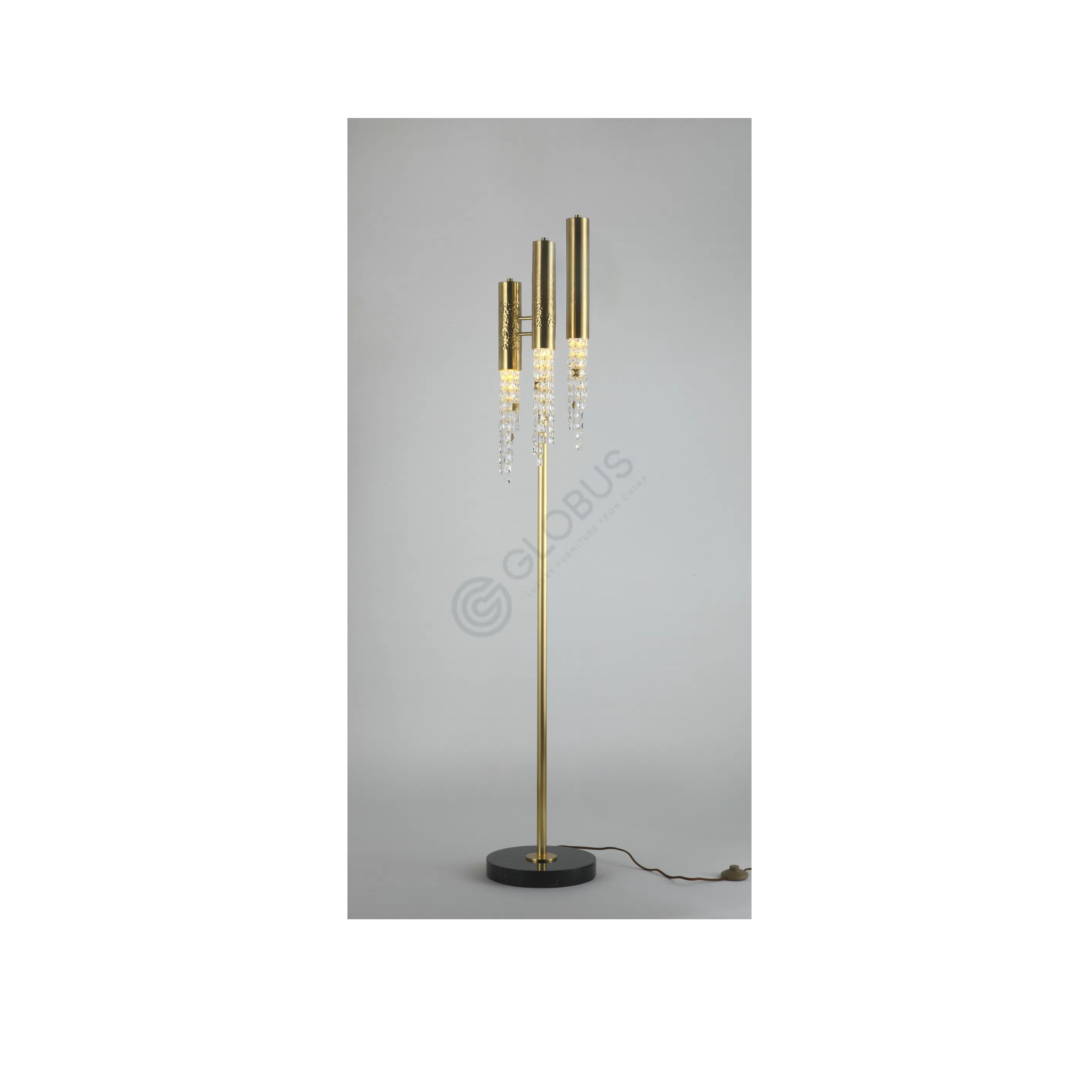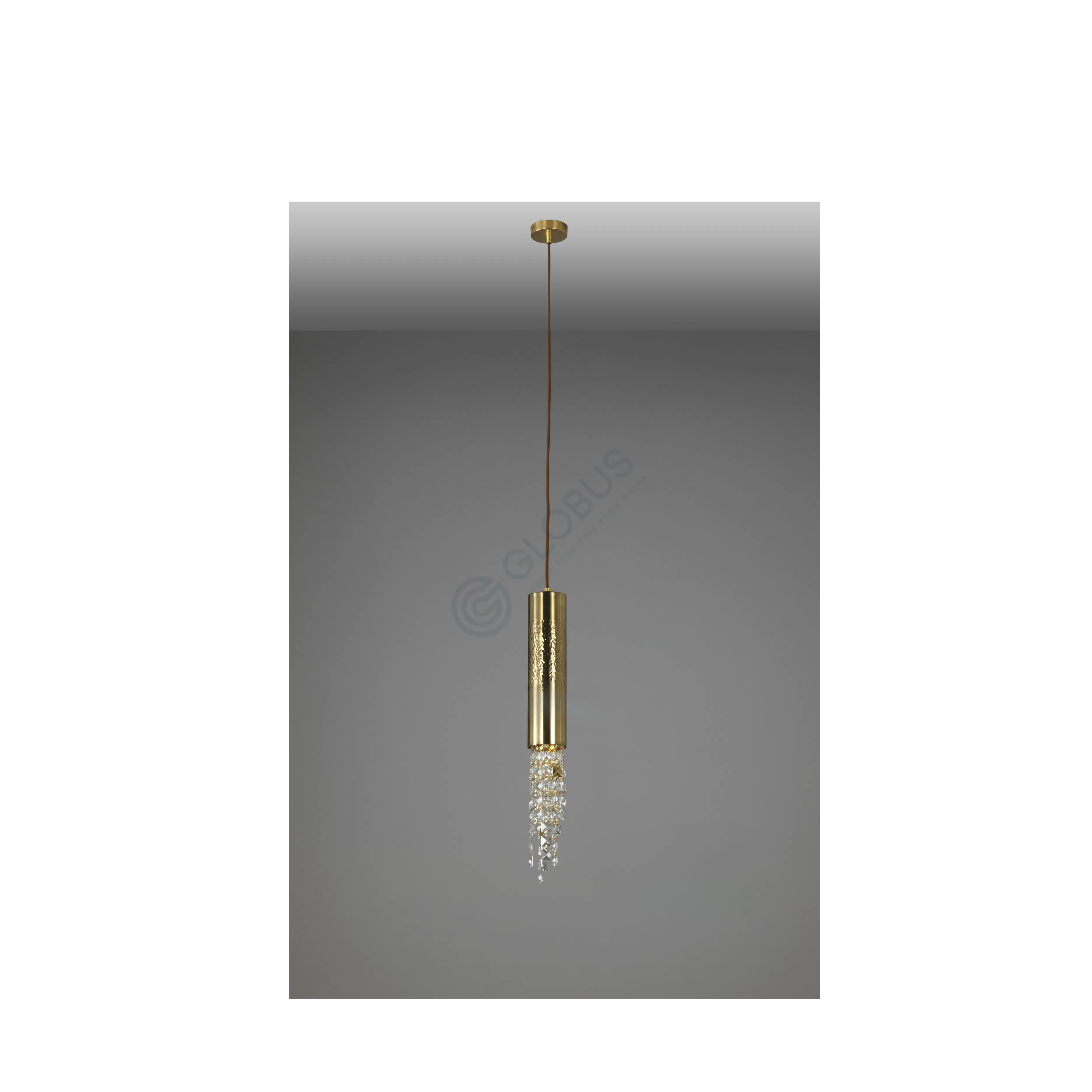 The aesthetic leans towards a blend of Modern simplicity and Art Deco elegance. The metallic gleam of the brass contrasts beautifully with the clear brilliance of the crystals, creating a sophisticated statement piece.