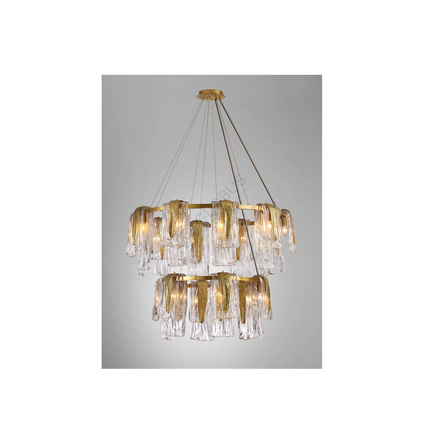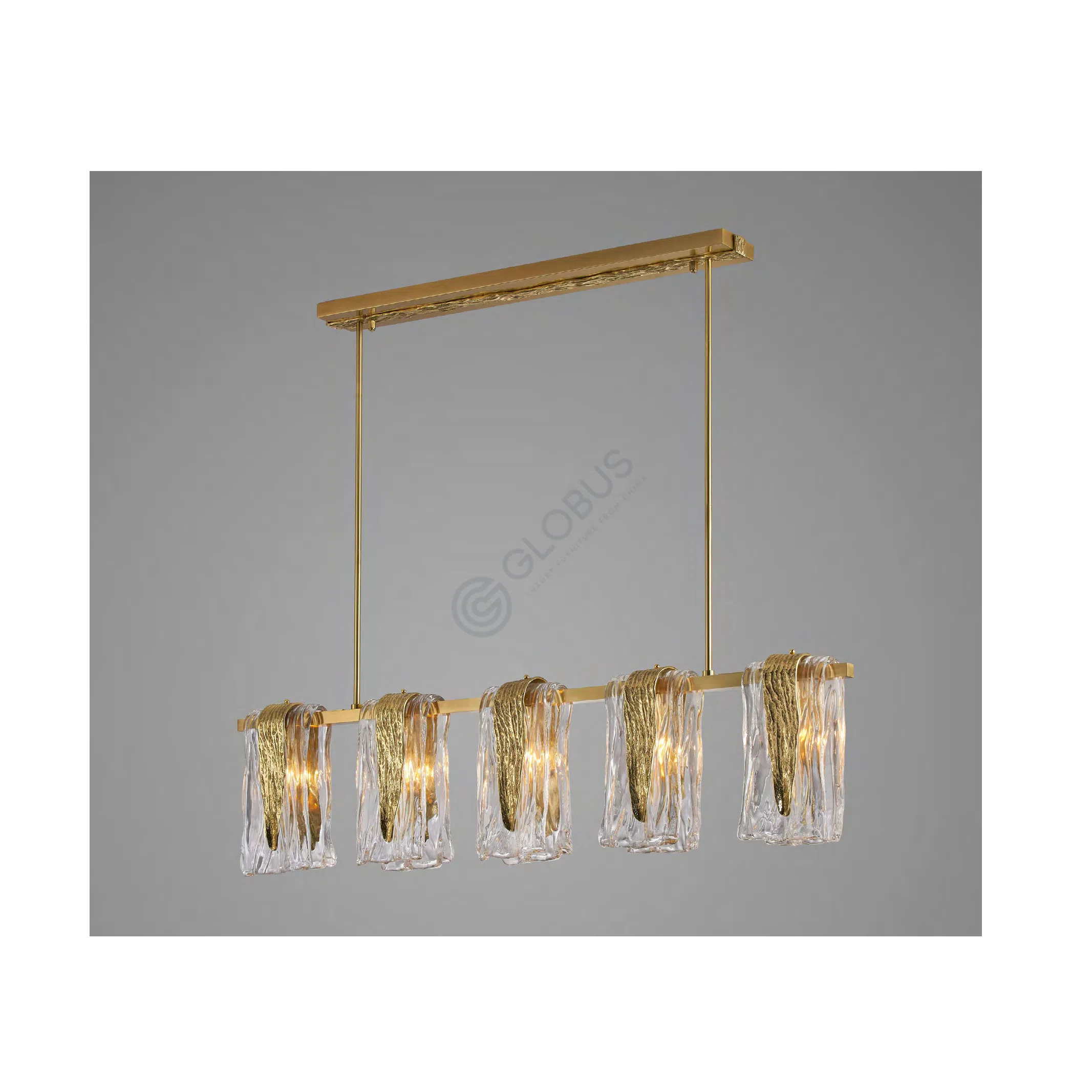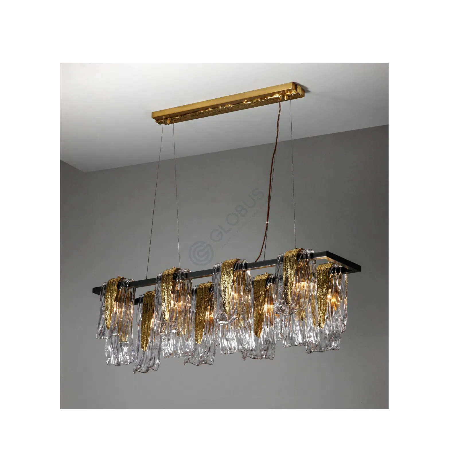 Elevate your living space with this stunning chandelier, crafted from high-quality brass and glass. Its modern design, infused with art-deco elements, makes it a versatile addition to any room. Whether placed in the living room, bedroom, or dining room, this chandelier adds a touch of elegance and sophistication. The combination of brass and glass creates a beautiful interplay of light and shadow, enhancing the ambiance of your home. This piece is not just a lighting fixture, but a statement of style and taste.
