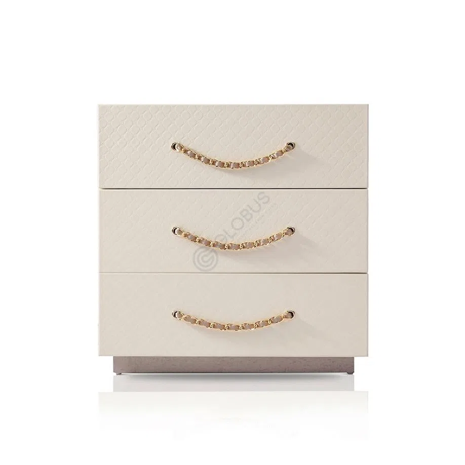 Presenting a sophisticated modern pouf, designed to bring elegance and comfort into any space. Upholstered in a soft textile with a beautiful, subtle sheen, it features exquisite quilted diamond stitching along its sides. A distinctive gold-tone chain detail adds a touch of contemporary chic.