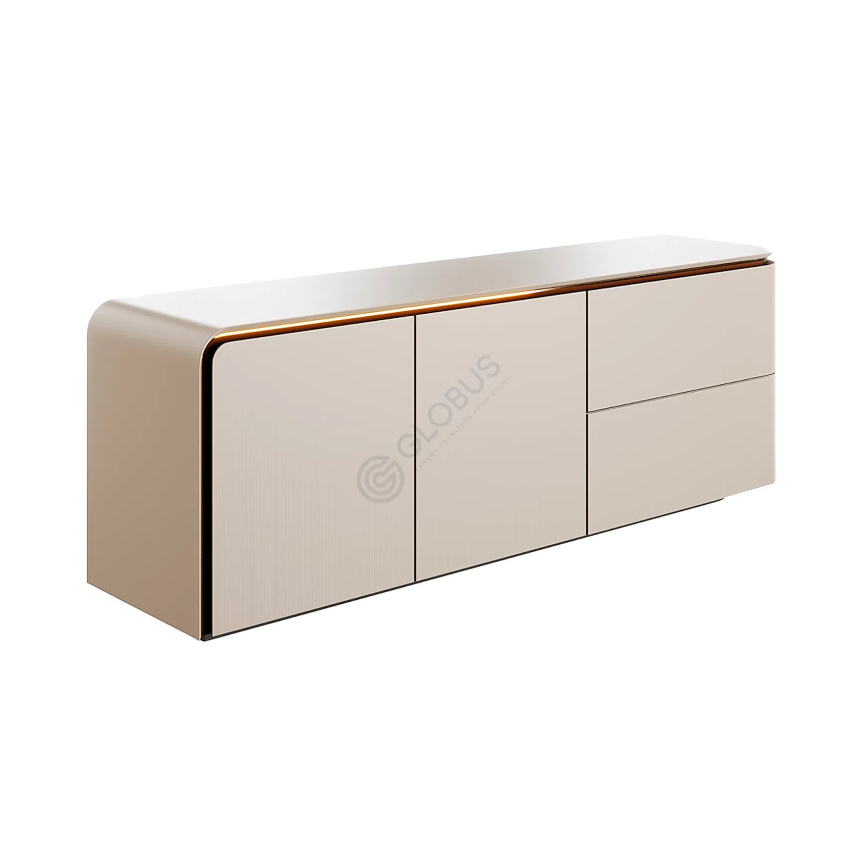 This modern dresser offers a sophisticated storage solution with a sleek, low-profile design. It presents a clean aesthetic featuring six handleless drawers arranged in a symmetrical layout across the front.