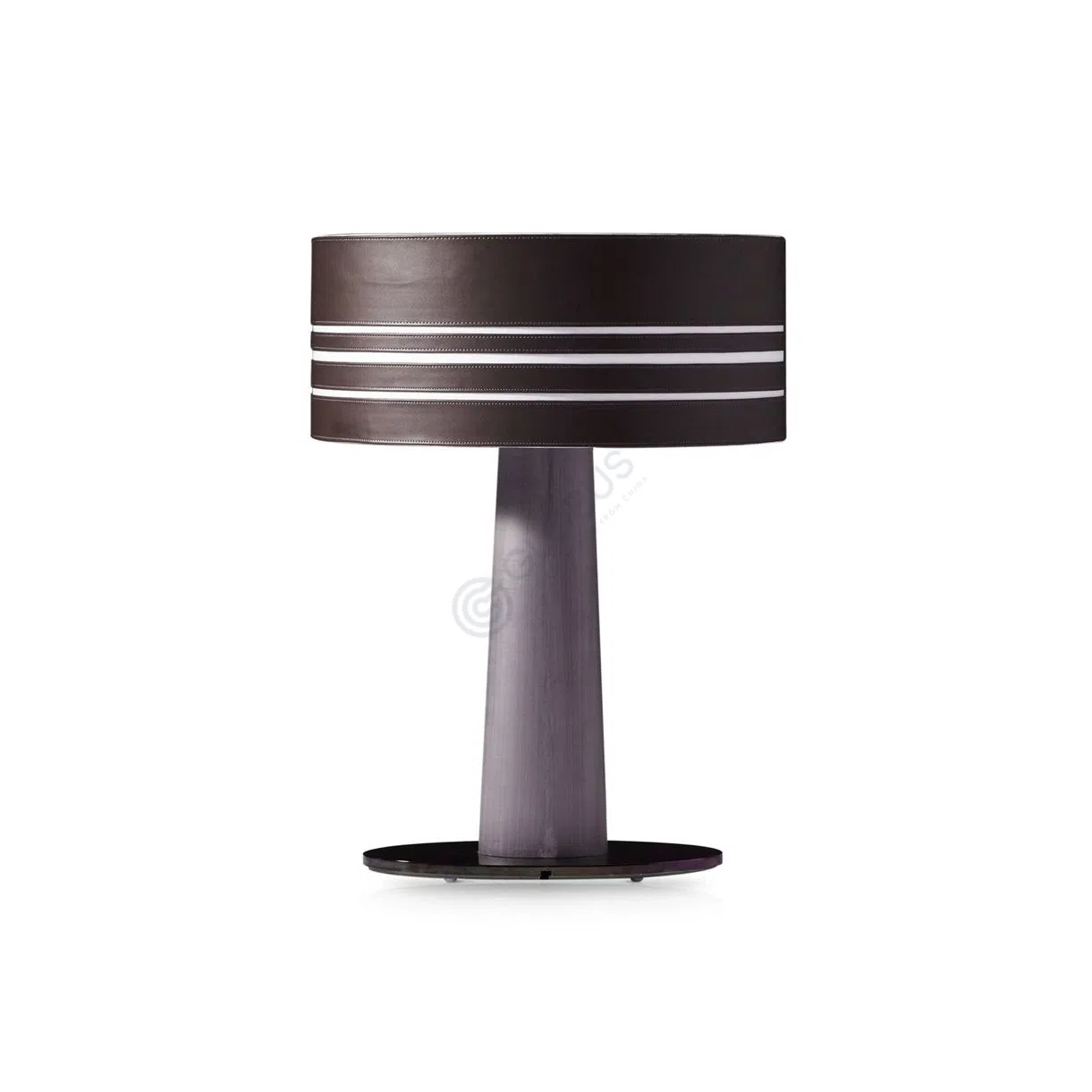 Crafted with attention to detail, the lamp utilizes a sophisticated mix of materials. Natural veneer and sturdy iron contribute to the structural elegance of the base and stand, while the shade incorporates refined microfiber leather for a luxurious tactile and visual finish. Plywood provides underlying strength and shape, ensuring lasting quality.