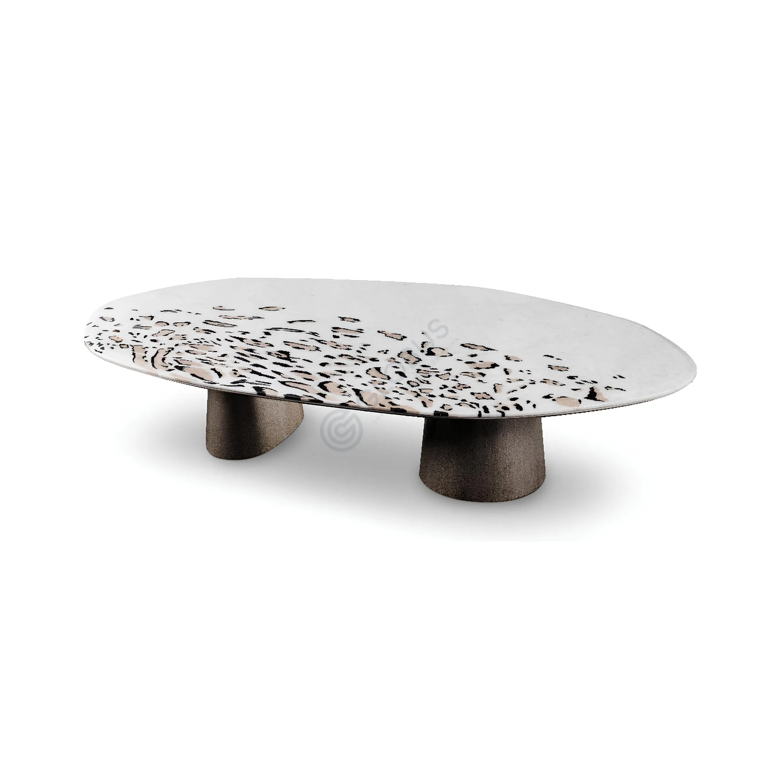 A modern side table crafted from premium materials offers both style and function for your living space. This piece features a distinctive design that blends natural beauty with contemporary form.