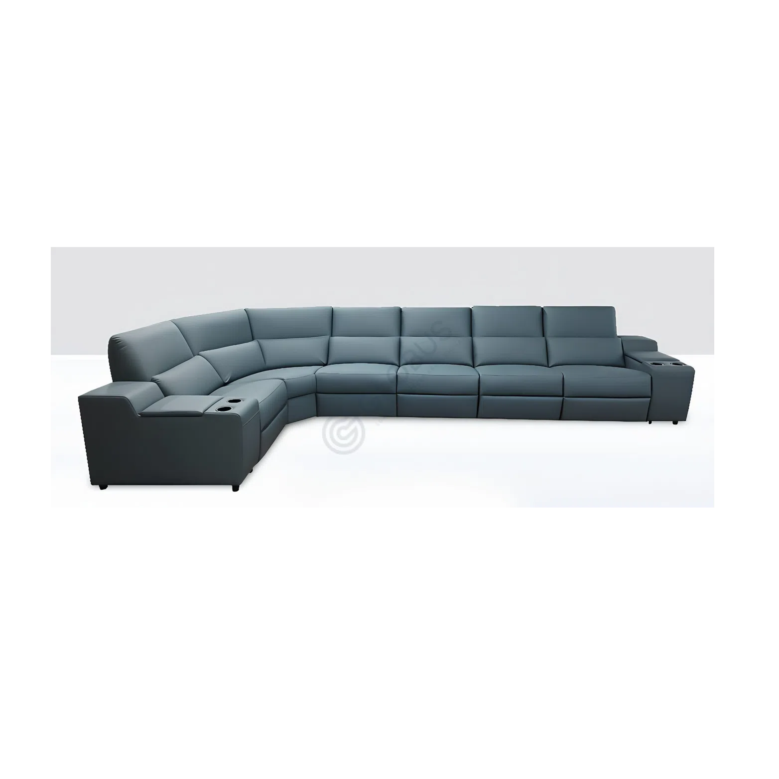 Wrapped in a premium PU upholstery, the surface offers a refined look and soft touch, while being practical for daily use. Integrated console sections include handy cup holders, positioned conveniently within reach to enhance relaxation.