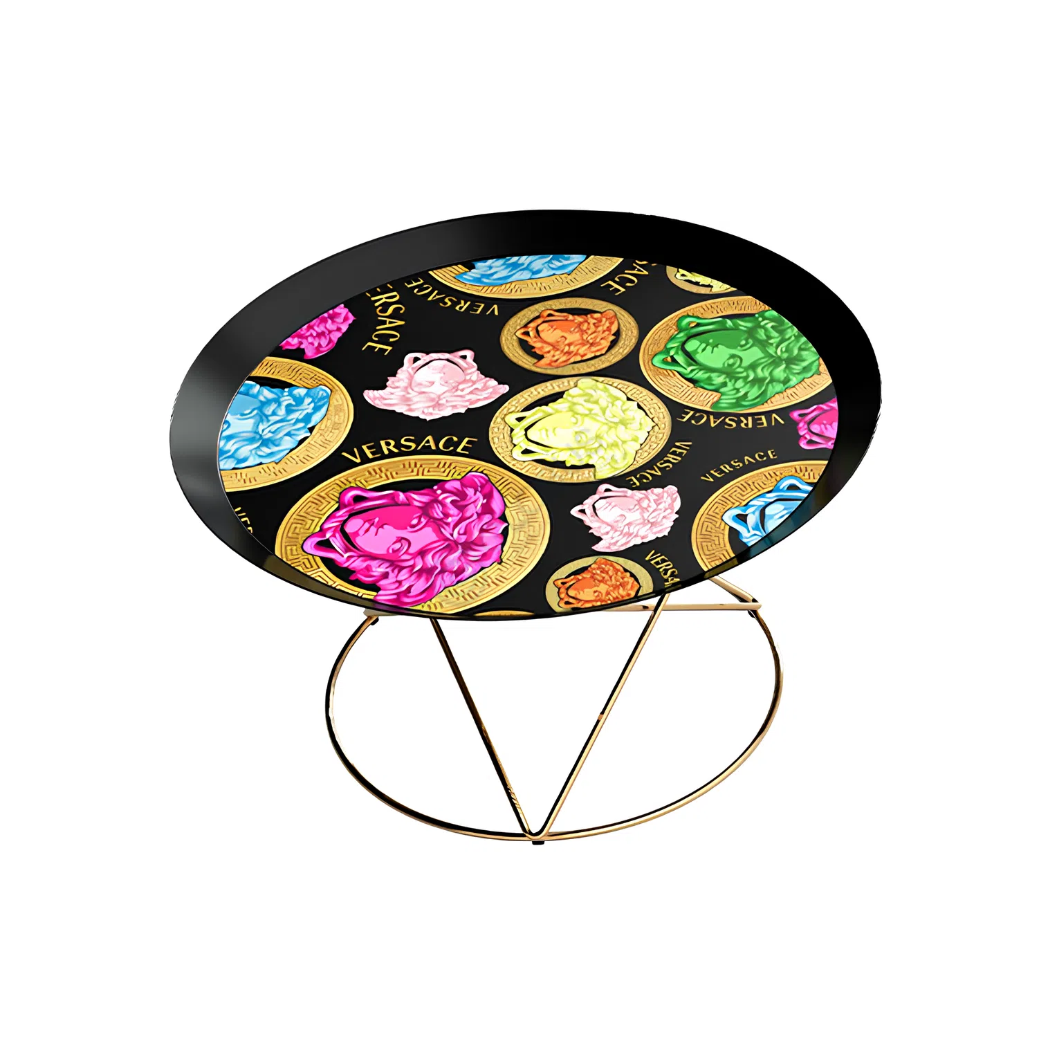 This piece serves not only as a convenient surface for drinks or decor but also as an artistic element. Its modern construction and distinctive top pattern blend functionality with sophisticated style, enhancing the overall ambiance of the space.