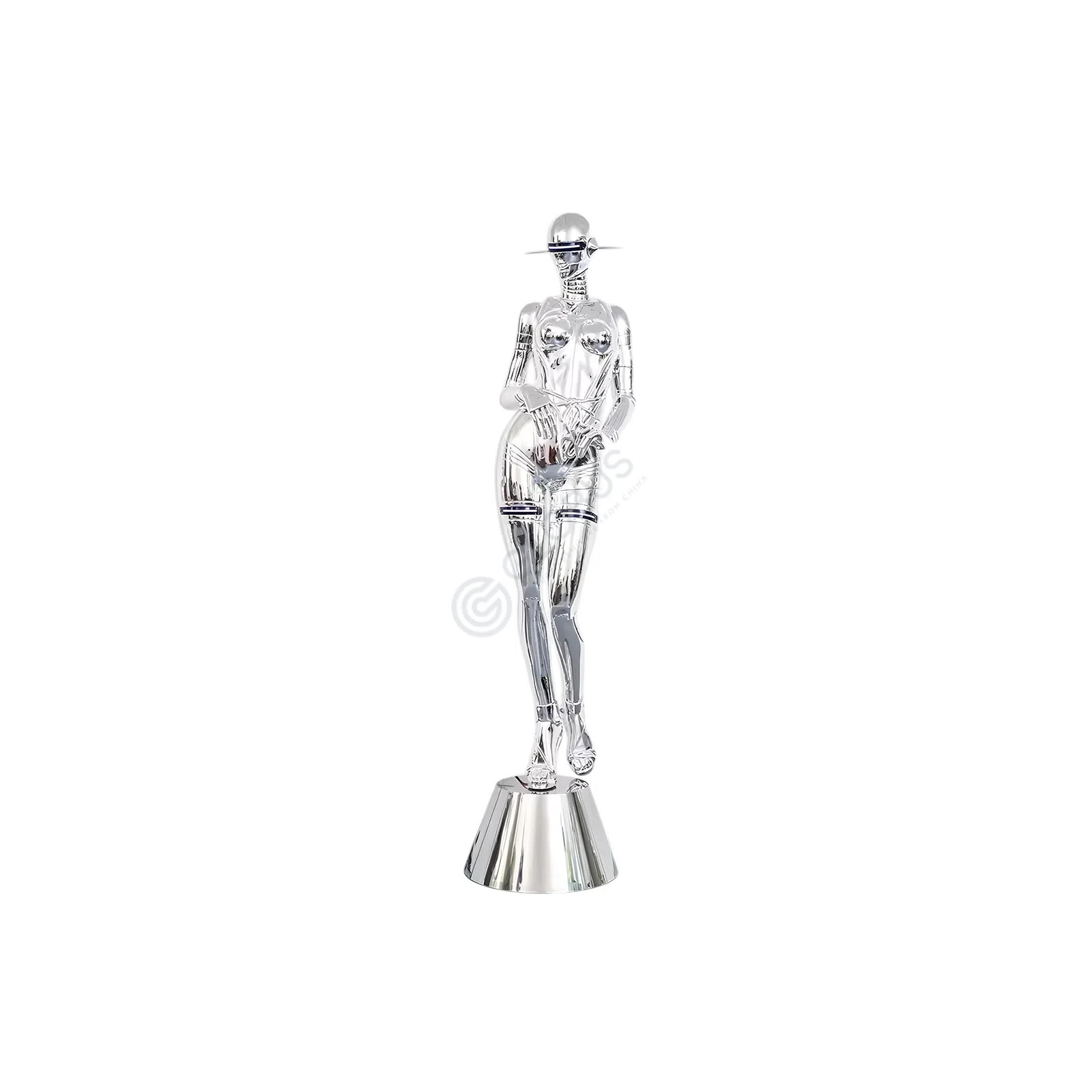 This unique floor lamp combines artistic design with functionality, making it a striking addition to any modern space. Crafted from durable fiberglass and finished with an electroplated coating, it offers a sleek, reflective surface that complements contemporary interiors. The lamp's innovative design and meticulous detailing make it a conversation piece while providing practical lighting. Perfect for those who appreciate bold, sculptural décor with a touch of sophistication.
