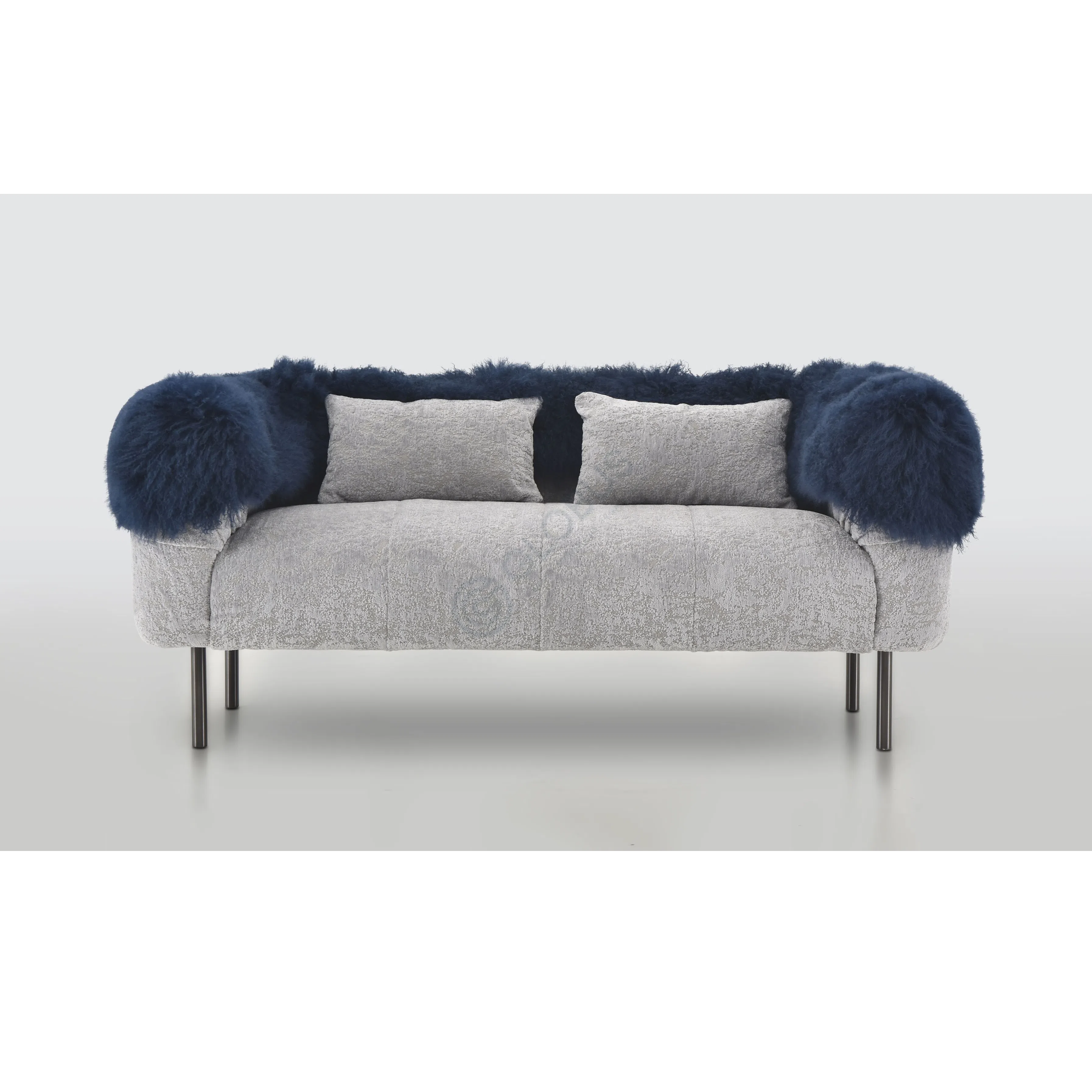 This armchair seamlessly blends modern design with luxurious comfort. Crafted with a solid wood frame for durability, it features a stainless steel base that adds a sleek and stable foundation. The upholstery, made from soft and textured textiles, is complemented by a plush, deep green accent that wraps around the backrest and arms, creating a striking visual contrast. Perfect for lounging, this piece offers both style and practicality, making it a versatile addition to any living space.