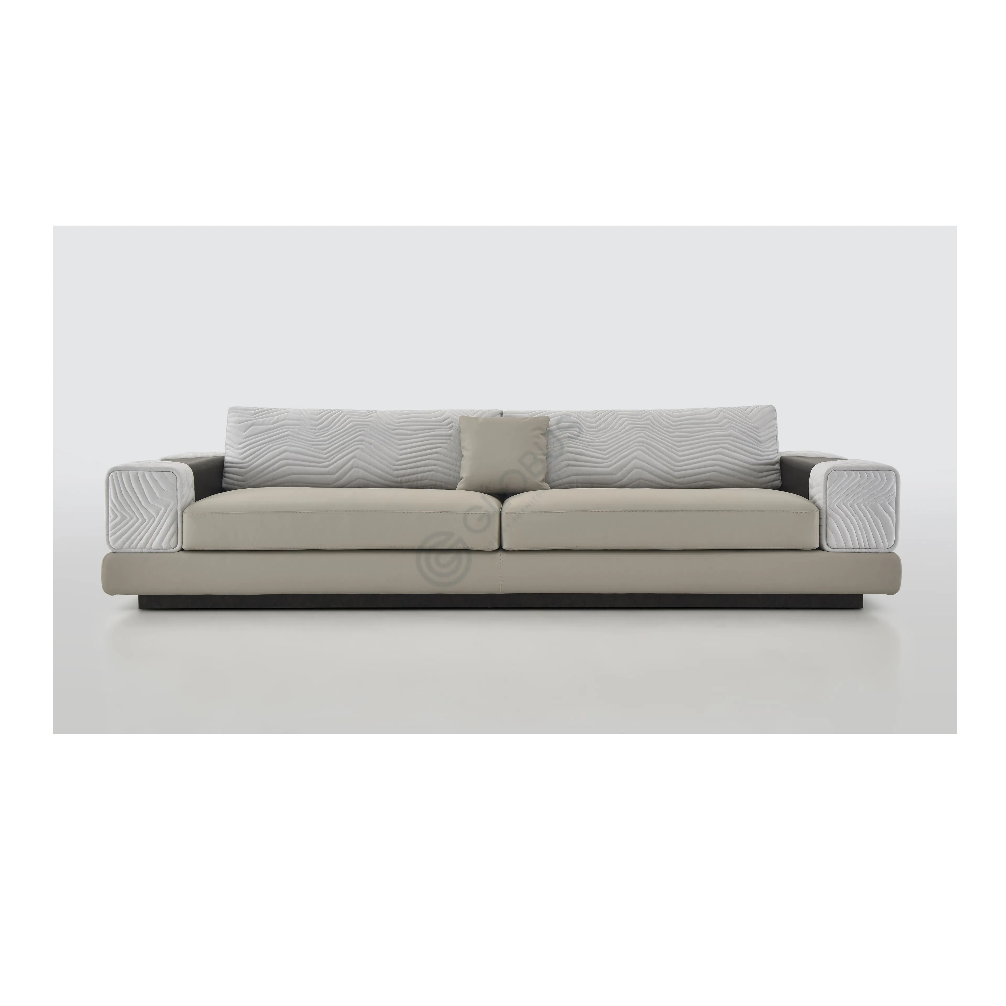 This contemporary armchair combines style and comfort in a refined design. Built with a solid wood frame and stainless steel base, it ensures durability and stability. The seat and backrest are upholstered in premium leather and soft textile, offering a luxurious feel and sophisticated appearance. Its gently curved backrest, featuring a subtle textured pattern, enhances both support and visual appeal. Designed to complement modern interiors, this armchair is ideal for creating a cozy and elegant seating area.
