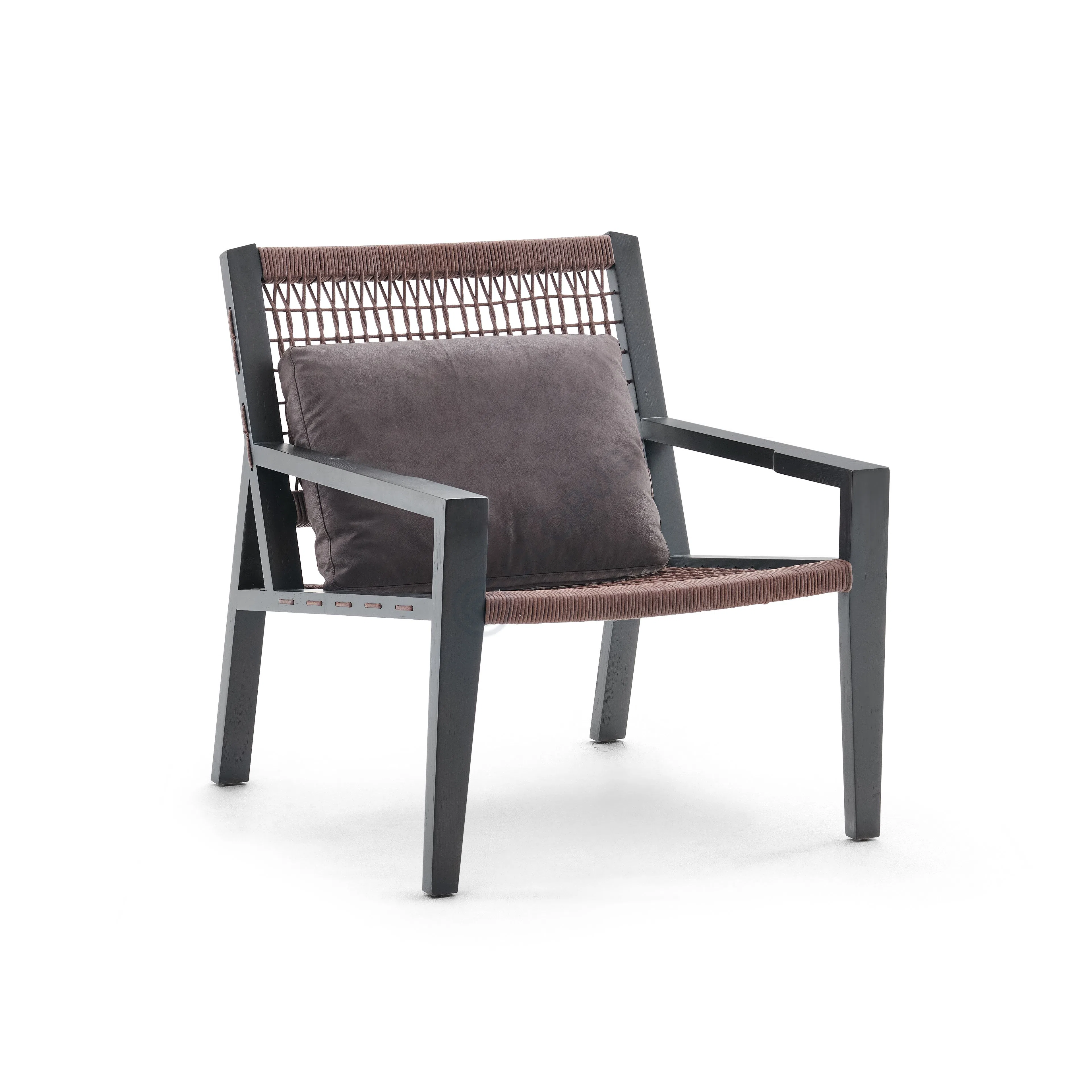 The seating surface is crafted from intricately woven rope, creating a textured and comfortable top. This material choice adds a touch of natural warmth and visual interest, contrasting beautifully with the sleek wood structure. The open weave provides a light, airy feel to the piece.