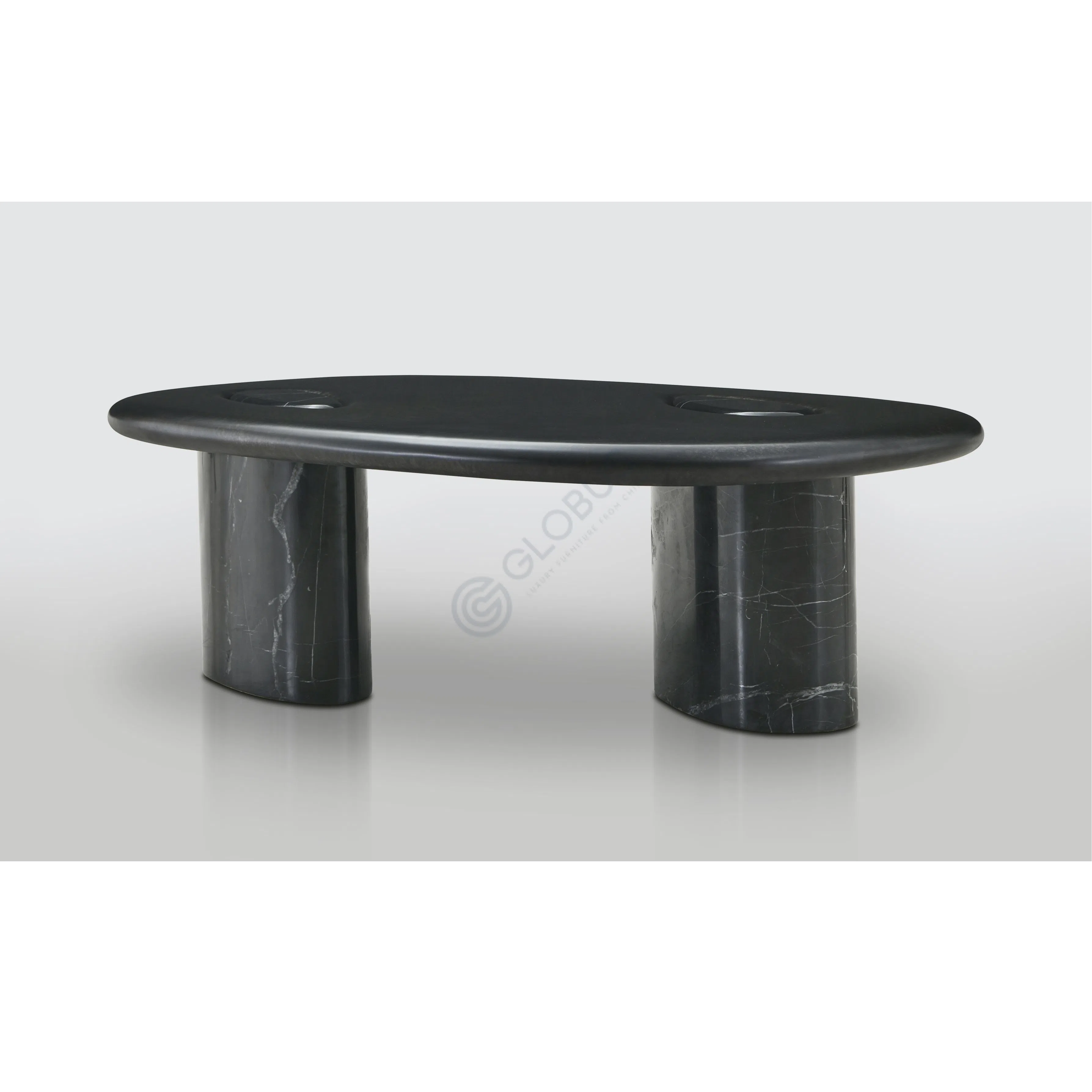 Crafted with premium materials, the base is made from natural marble, showcasing unique veins that create an elegant pattern against the deep, polished surface. The top is finished in a complementary shade, likely utilizing MDF for its smooth, precise form. The combination of materials offers both visual interest and lasting durability.
