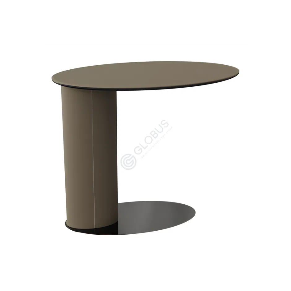 A distinctive support element crafted from polished stainless steel provides stability and adds a touch of contemporary shine. The interplay of materials and finishes highlights the table's sophisticated craftsmanship.