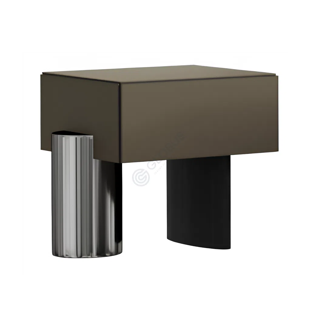 This piece blends practical storage with a distinctive modern form. The combination of materials and the thoughtful structure create a sophisticated item that enhances the atmosphere of a contemporary interior.