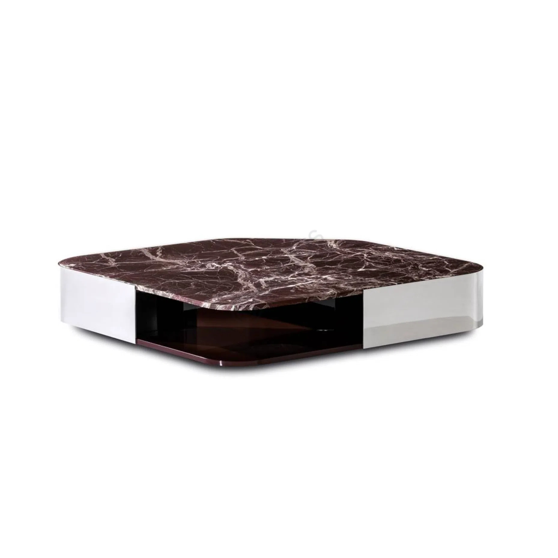 The desk stands on elegant legs made from polished stainless steel, providing a sturdy and stable foundation with a contemporary flair. Accents of stainless steel also frame the tabletop edges, adding a touch of refined gleam. The construction incorporates natural marble, contributing to its premium quality and inherent durability.