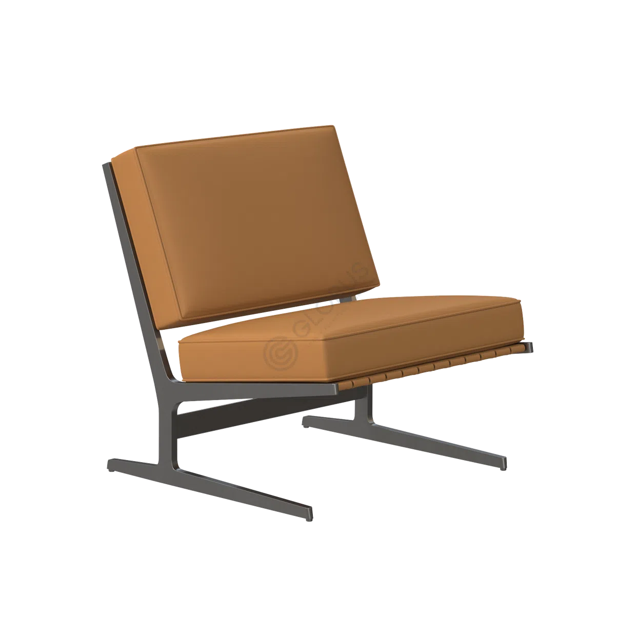 Beneath the cushion, a striking base of polished stainless steel provides sturdy support. The metal frame is shaped with distinct lines, embodying a contemporary style that complements various interiors.