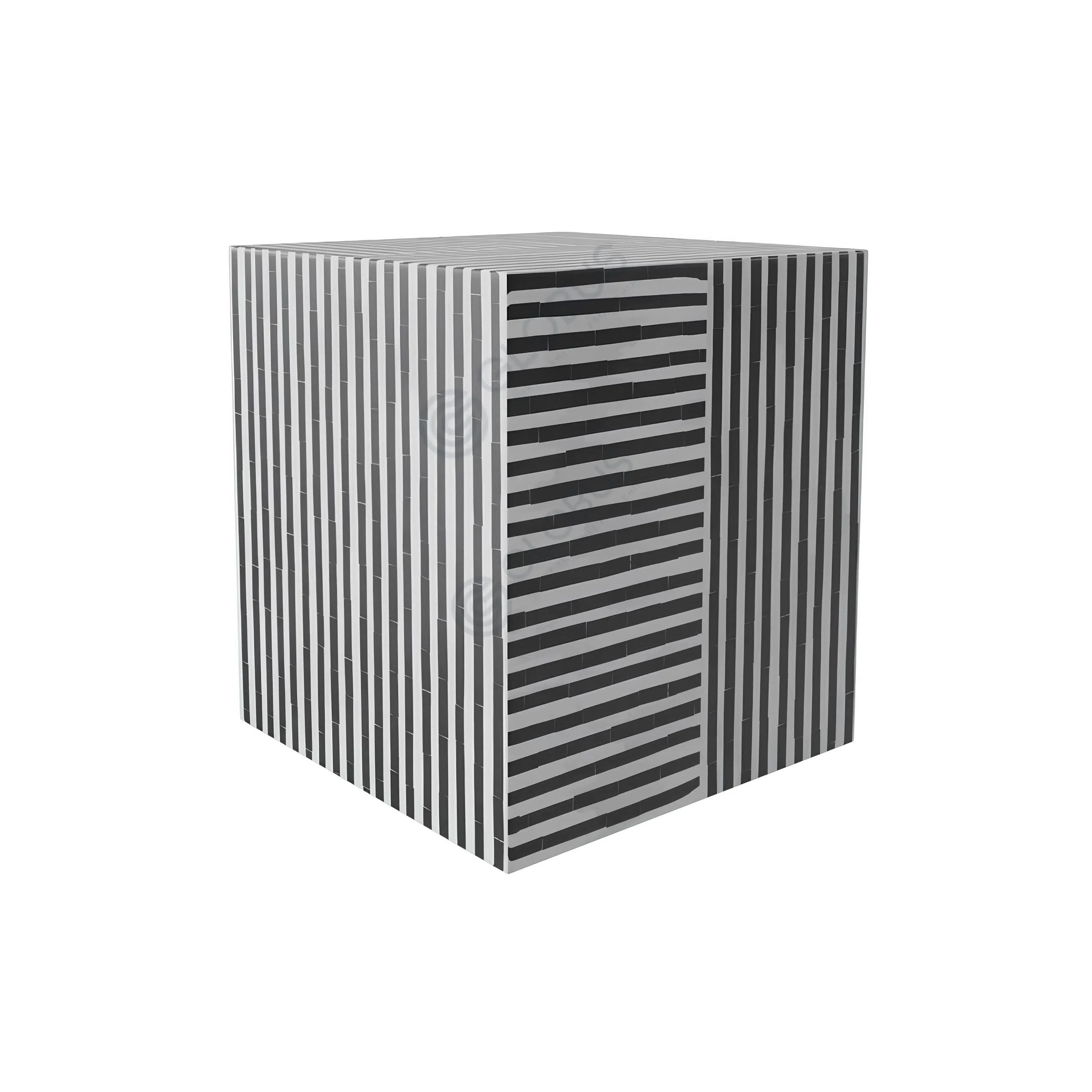 Crafted from durable MDF, the material provides a smooth base for the intricate striped finish. The arrangement of the stripes accentuates the table's curves, producing a dynamic visual effect from every angle.
