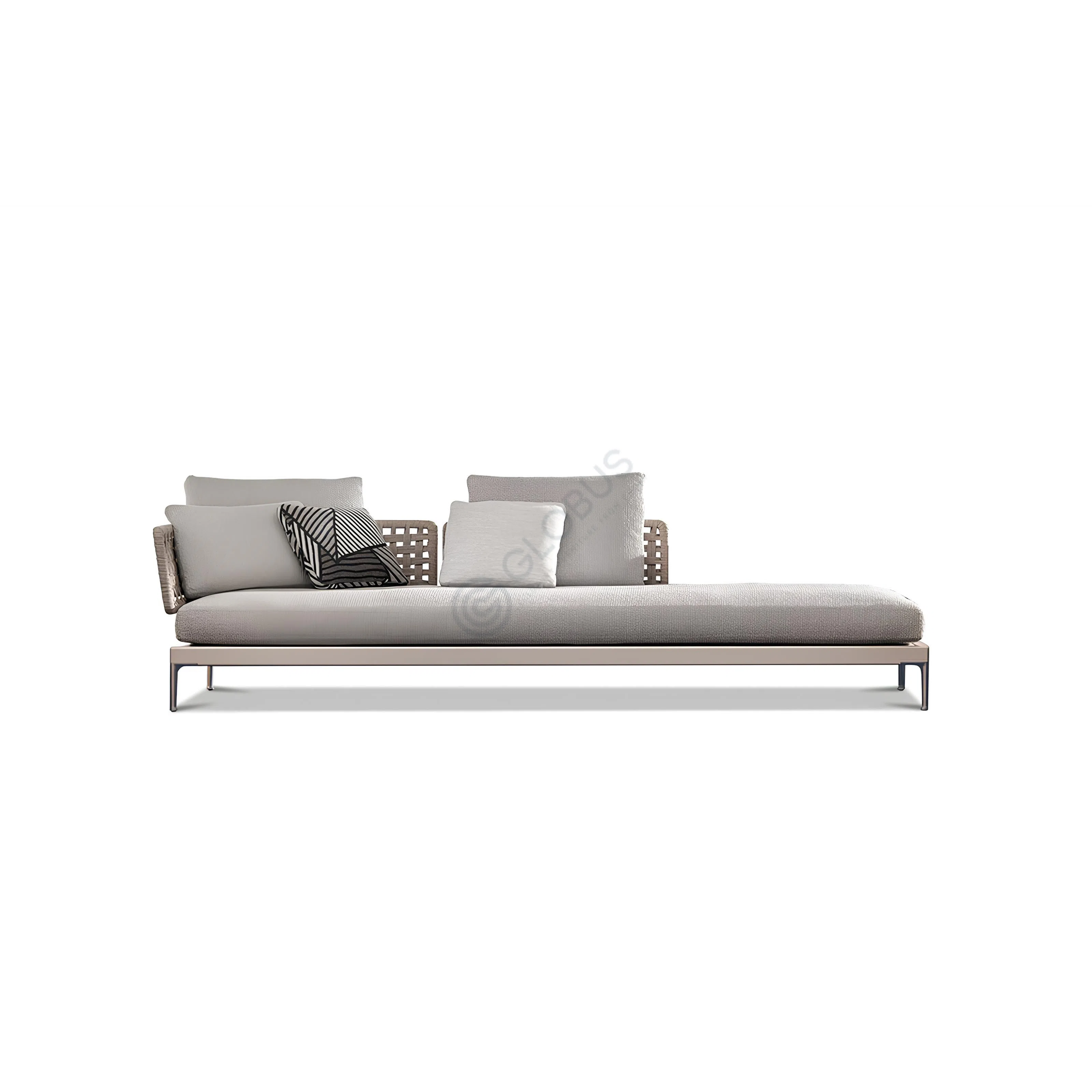 The modern armchair effortlessly combines style and functionality, making it an ideal addition to your garden, terrace, or swimming pool area. Crafted from durable aluminum and solid wood, it features an open weave rope back that adds a touch of sophistication while providing sturdy support.