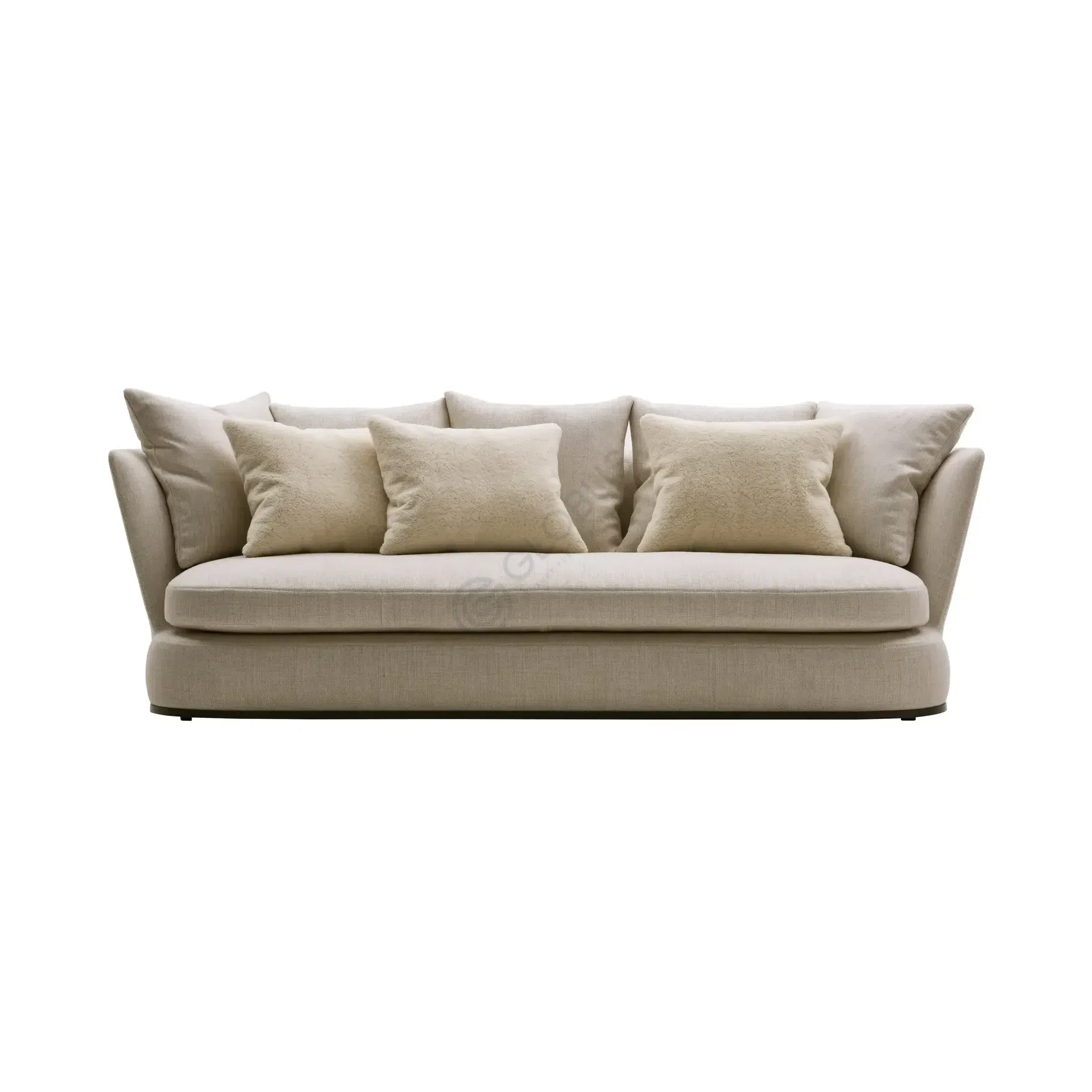 This modern couch blends understated elegance with inviting comfort. Its streamlined silhouette features smooth, clean lines, making it a refined addition to both living rooms and bedrooms. Upholstered in a soft, neutral textile, the couch instantly brightens any space while complementing a variety of color palettes.