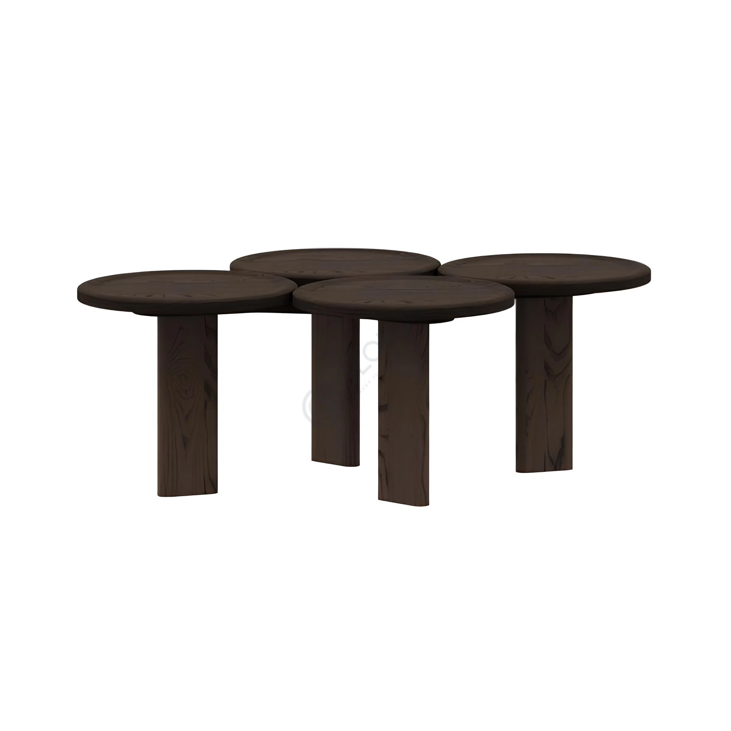 This coffee table combines modern design with eco-style for a striking addition to any living room. Its unique structure features multiple circular tabletops at varied heights, creating a layered and dynamic look. The clean lines and organic inspiration make it both a functional and tasteful centerpiece.