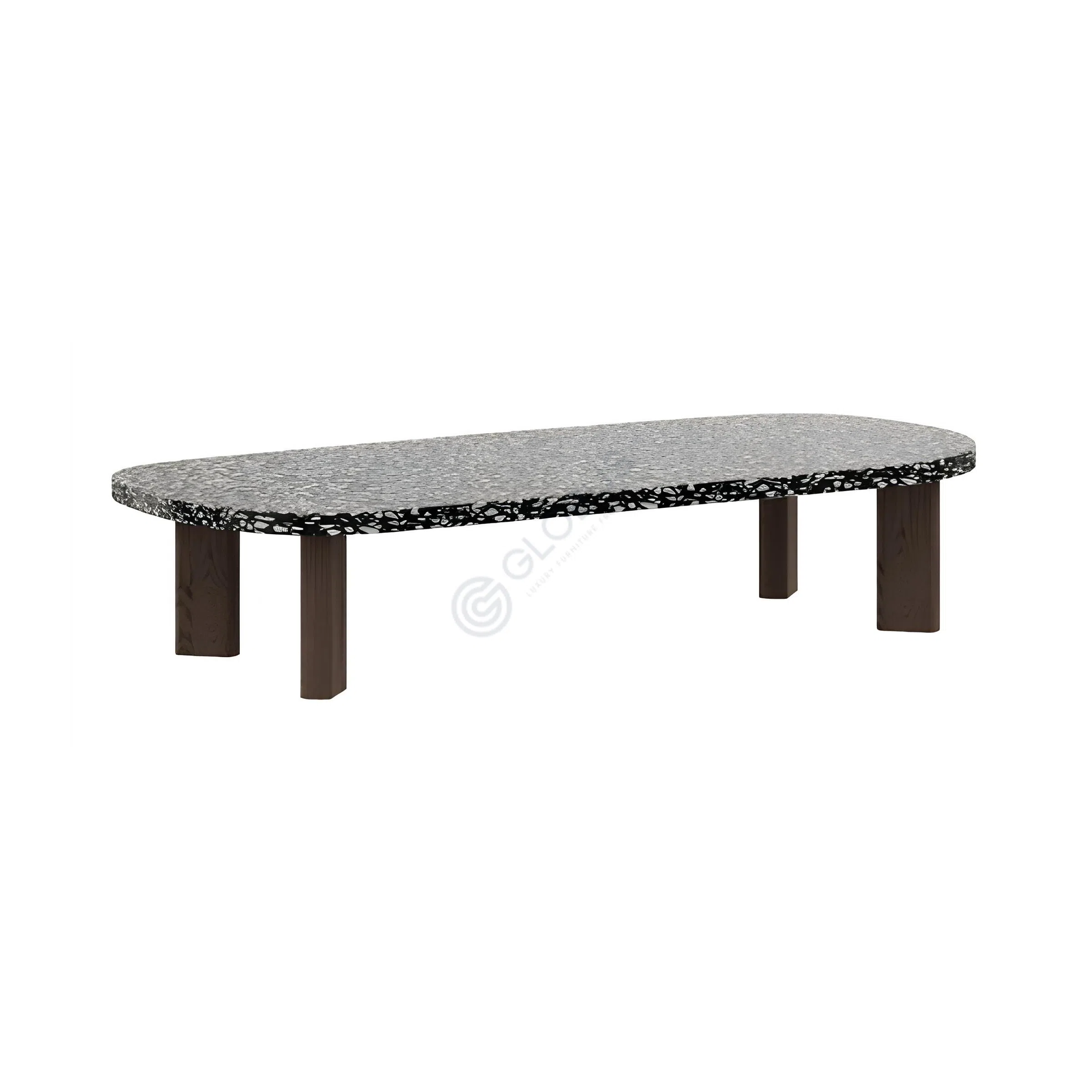 The solid wood legs provide robust support, skillfully balancing functionality and style. Their rich tones and natural grain perfectly harmonize with the marble, creating a visually striking contrast that elevates the table's modern design.