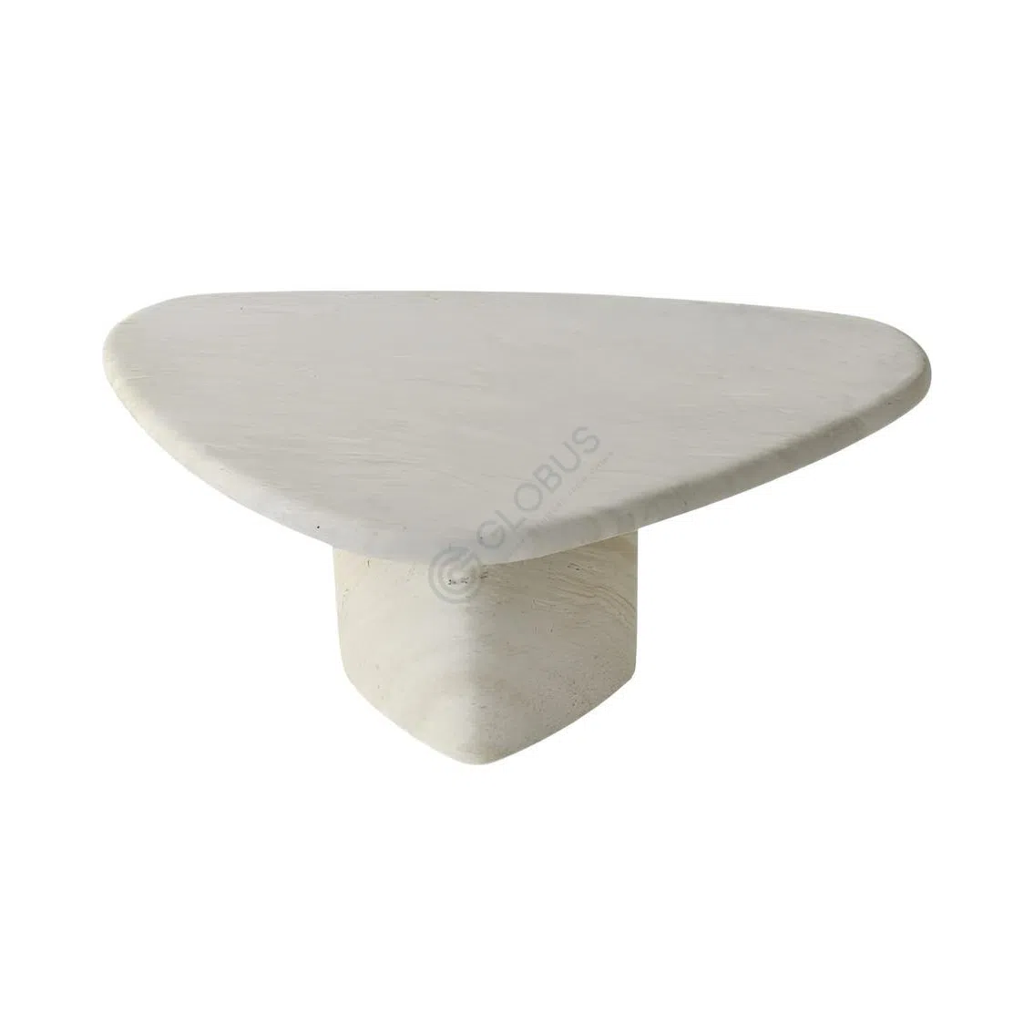 This modern coffee table features an organically shaped top crafted from natural travertine, highlighting the unique veining and smooth texture of the stone. Its understated pale hue fits seamlessly into contemporary living rooms, offering a bright and elegant presence without overpowering the space.