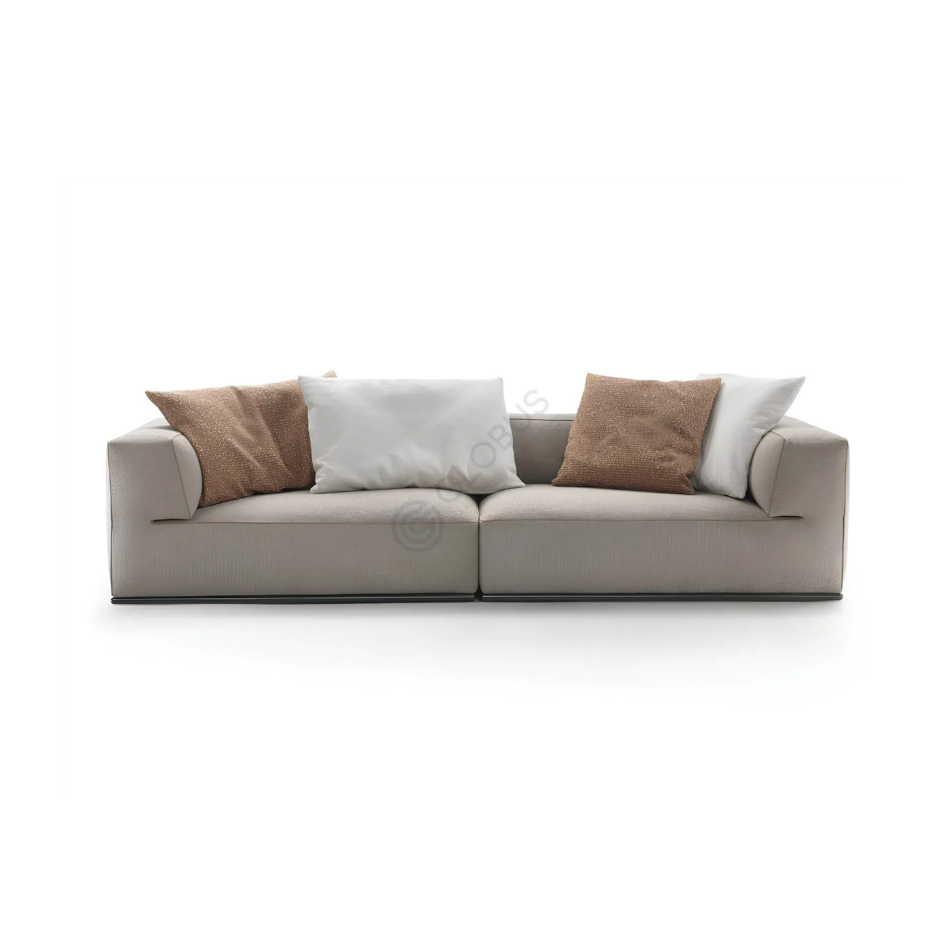 Accompanied by matching cushions, this couch provides a cozy lounging experience. Its spacious and deep seating is perfect for unwinding at the end of the day or for social gatherings in a modern home setting.