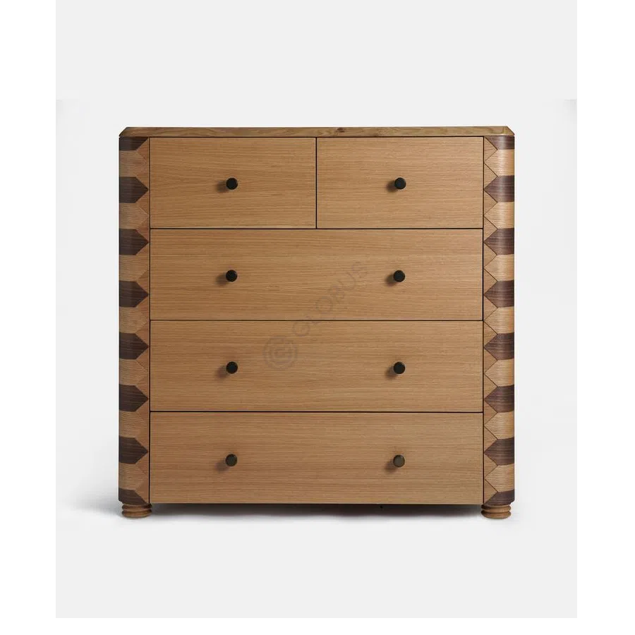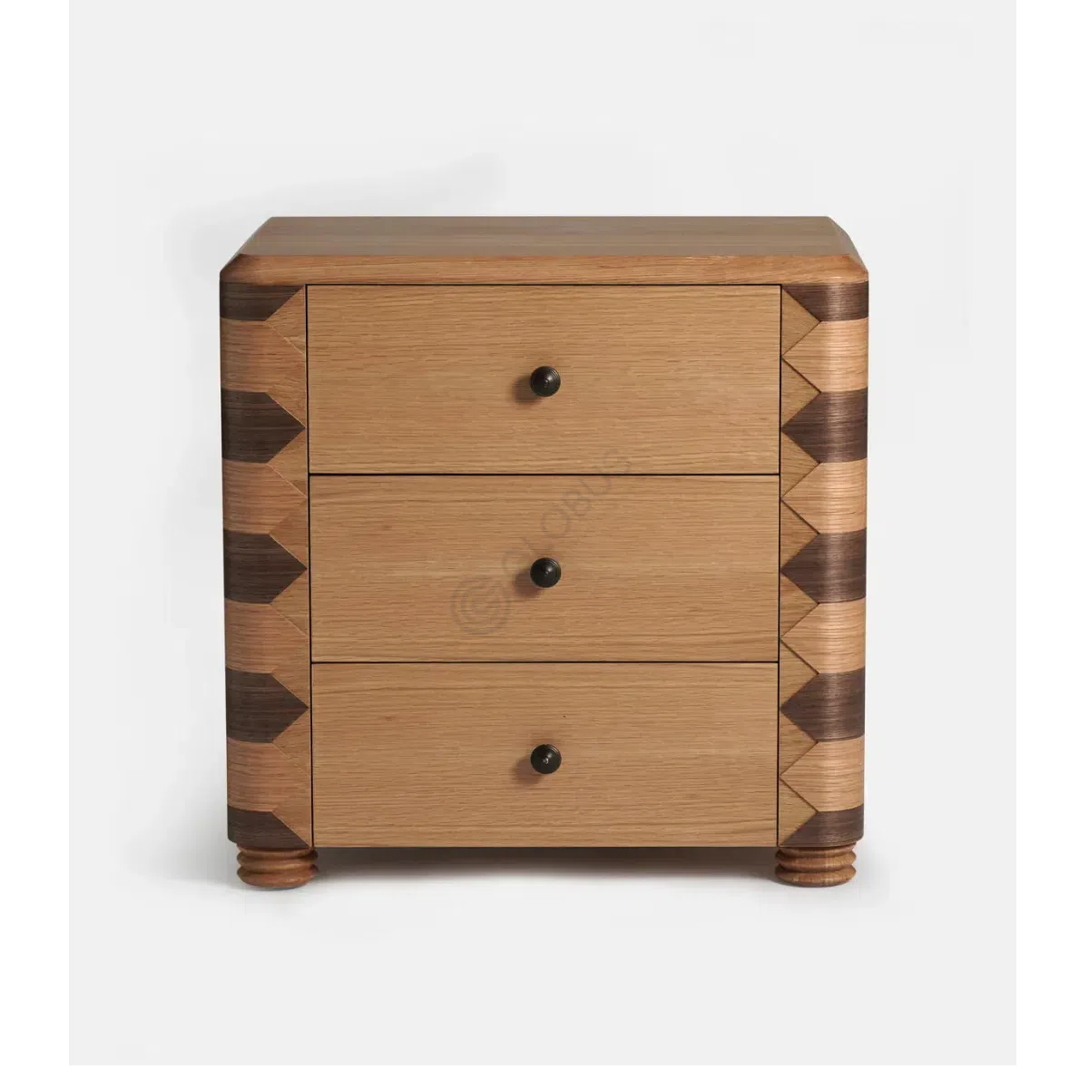 A geometric accent pattern on the corners and rounded legs adds subtle character while maintaining the sideboard’s contemporary appeal. The durable plywood construction ensures stability and longevity, making it as practical as it is attractive.