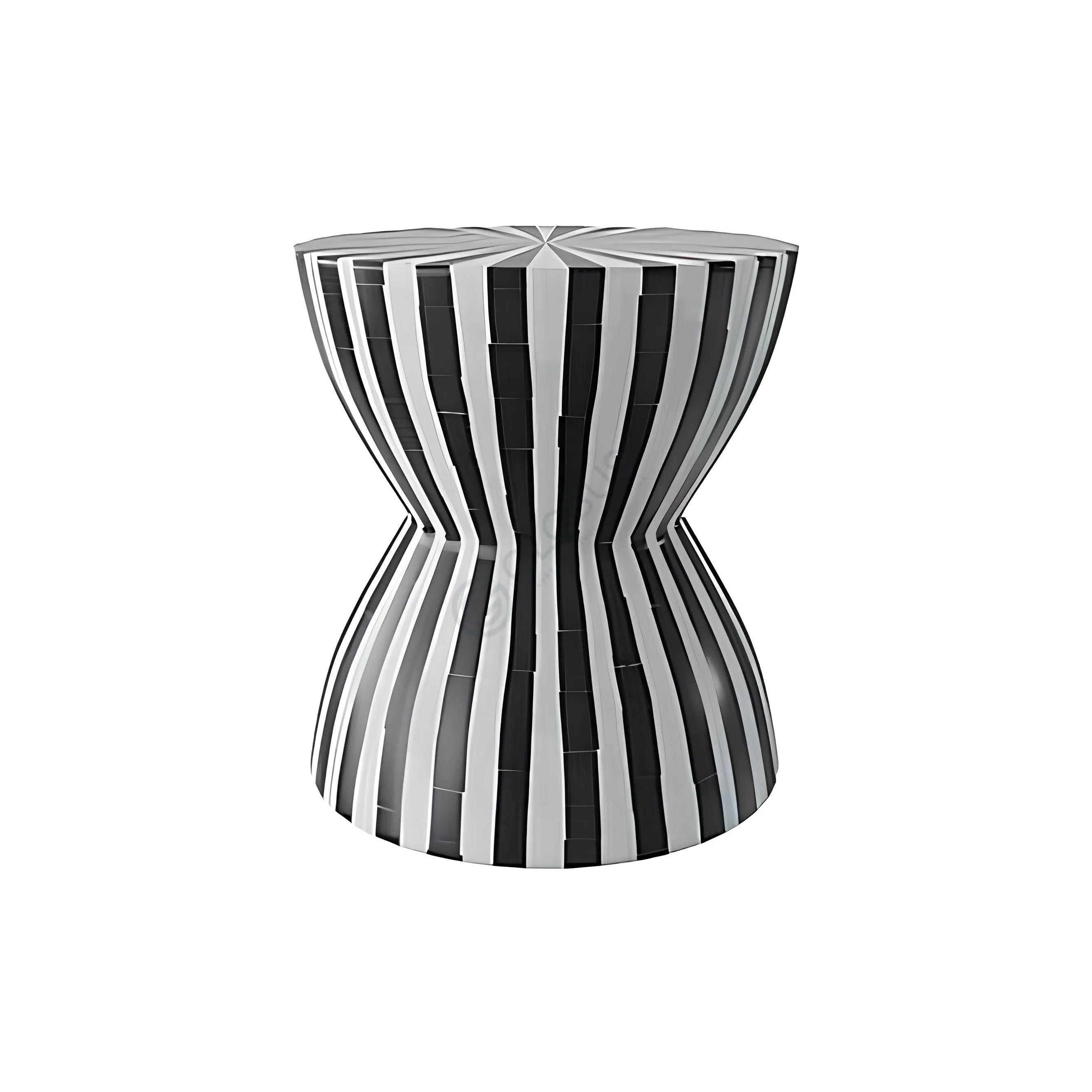 This modern side table features a sleek cylindrical silhouette adorned with a bold monochrome striped pattern, creating a striking yet versatile design. The clean lines enhance its contemporary appeal, making it a standout accent piece for any living room.