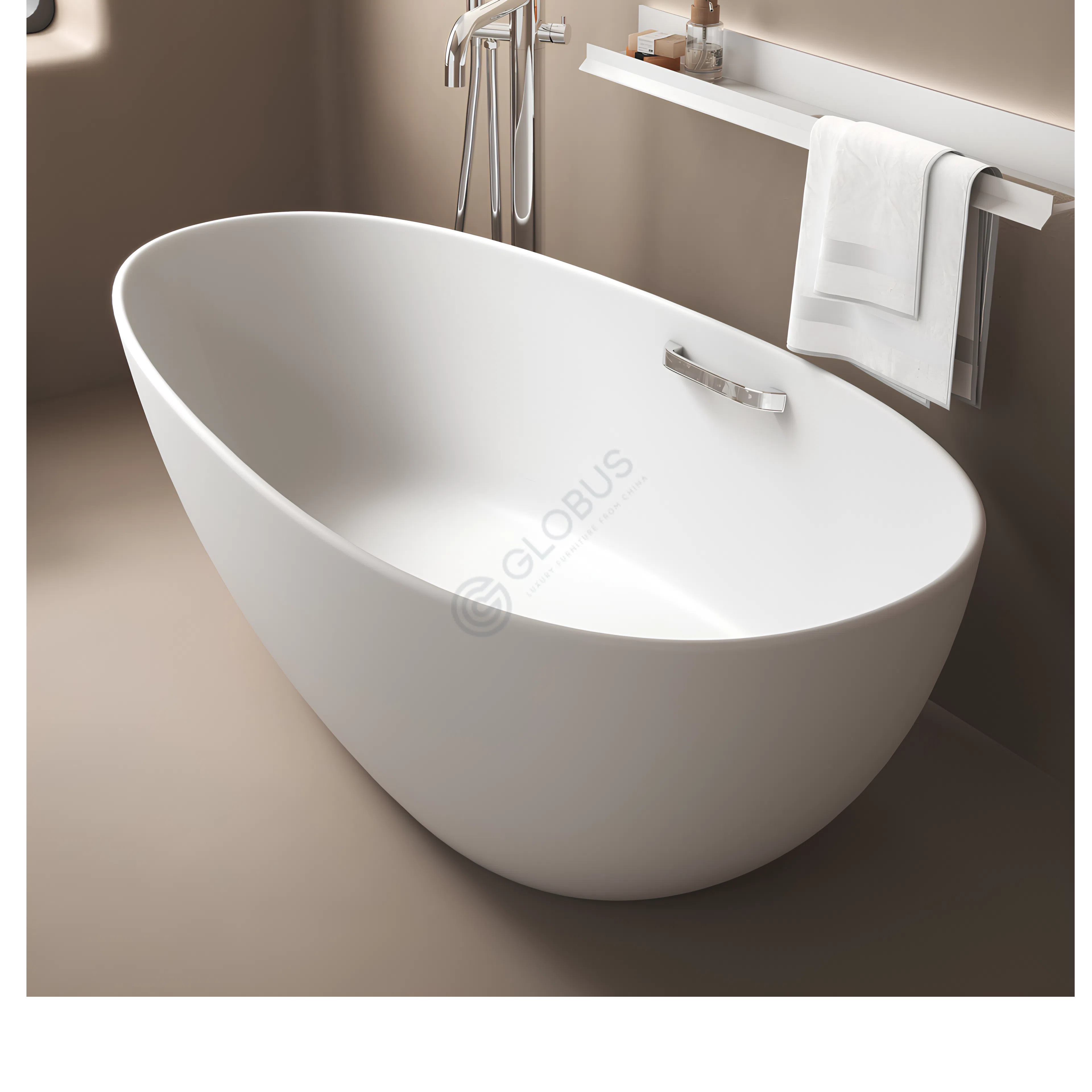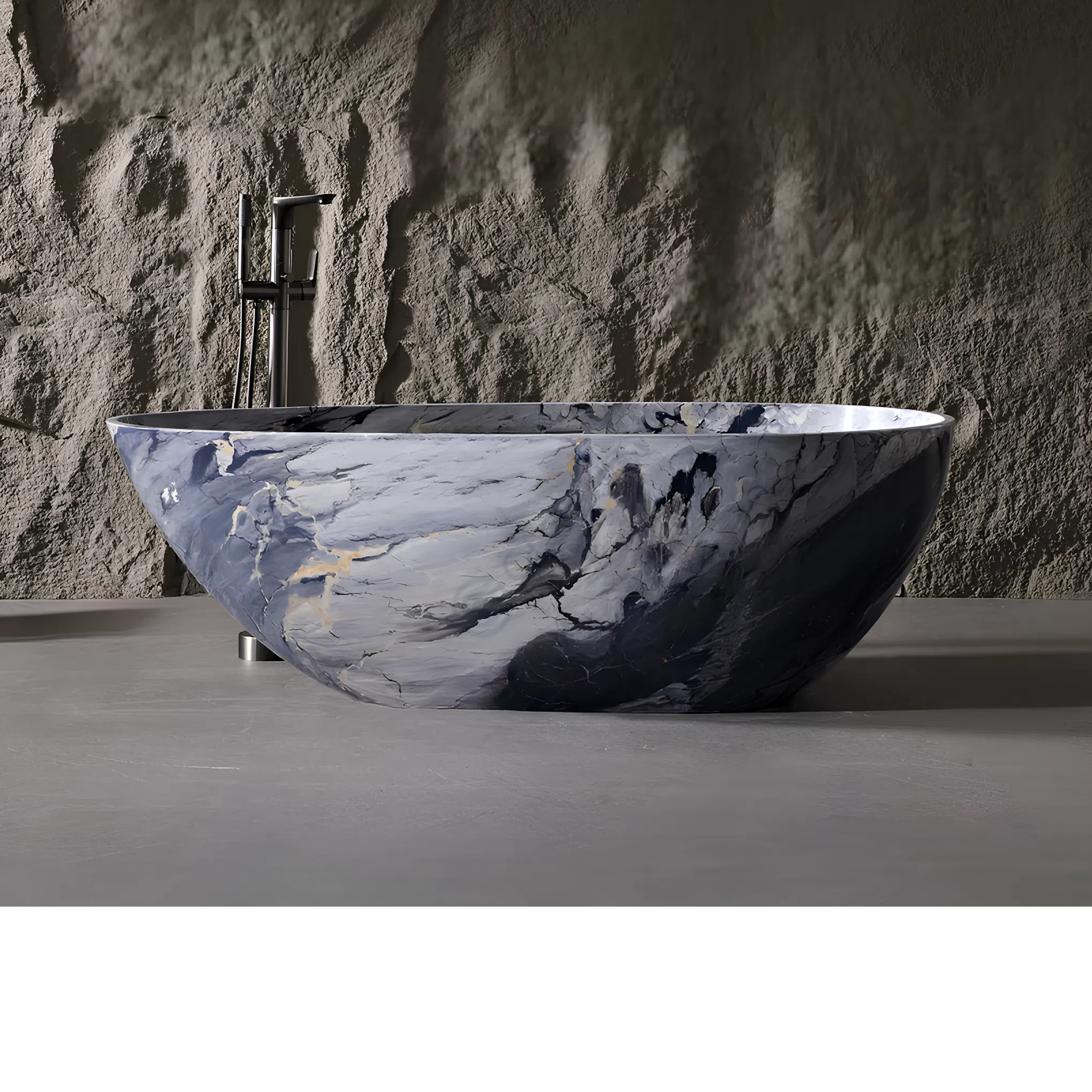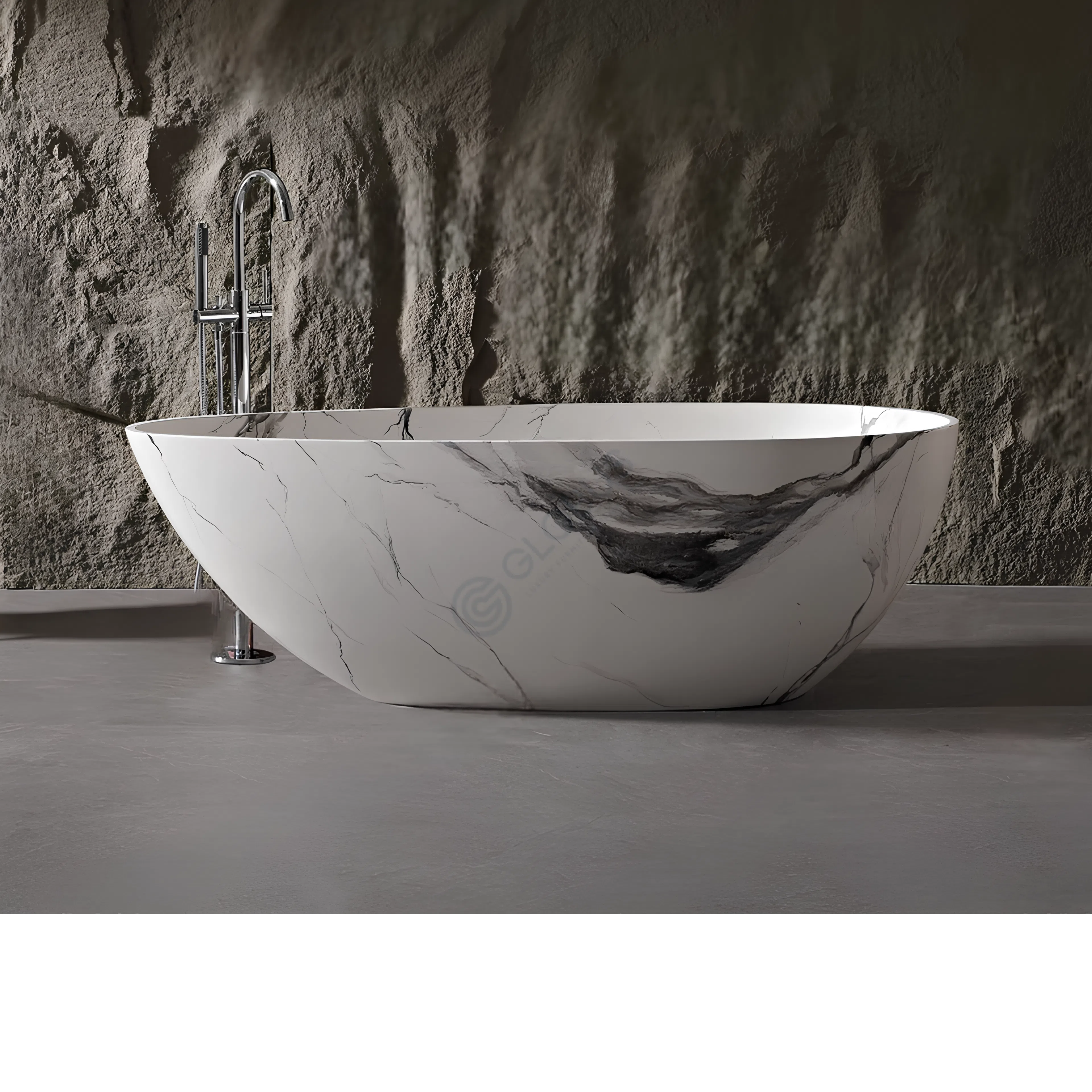 Constructed with durability in mind, the artificial stone resists stains, scratches, and fading, ensuring longevity. Its freestanding design provides flexibility in placement, making it a versatile addition to both large and small bathrooms.