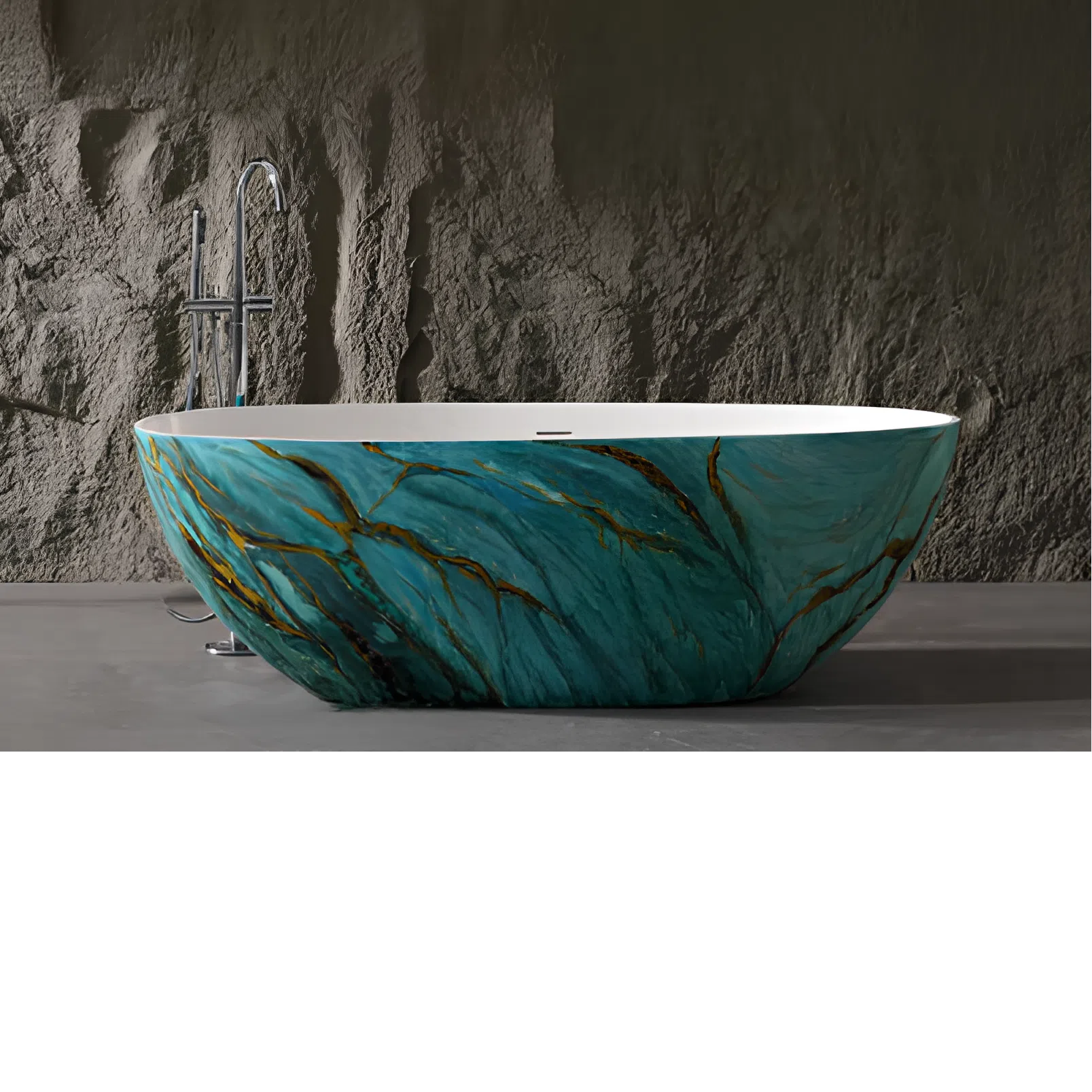 This modern bathtub is crafted from durable artificial stone, offering a seamless blend of elegance and functionality. Its smooth matte surface ensures a luxurious touch and a visually appealing finish, making it an eye-catching feature in any contemporary bathroom.