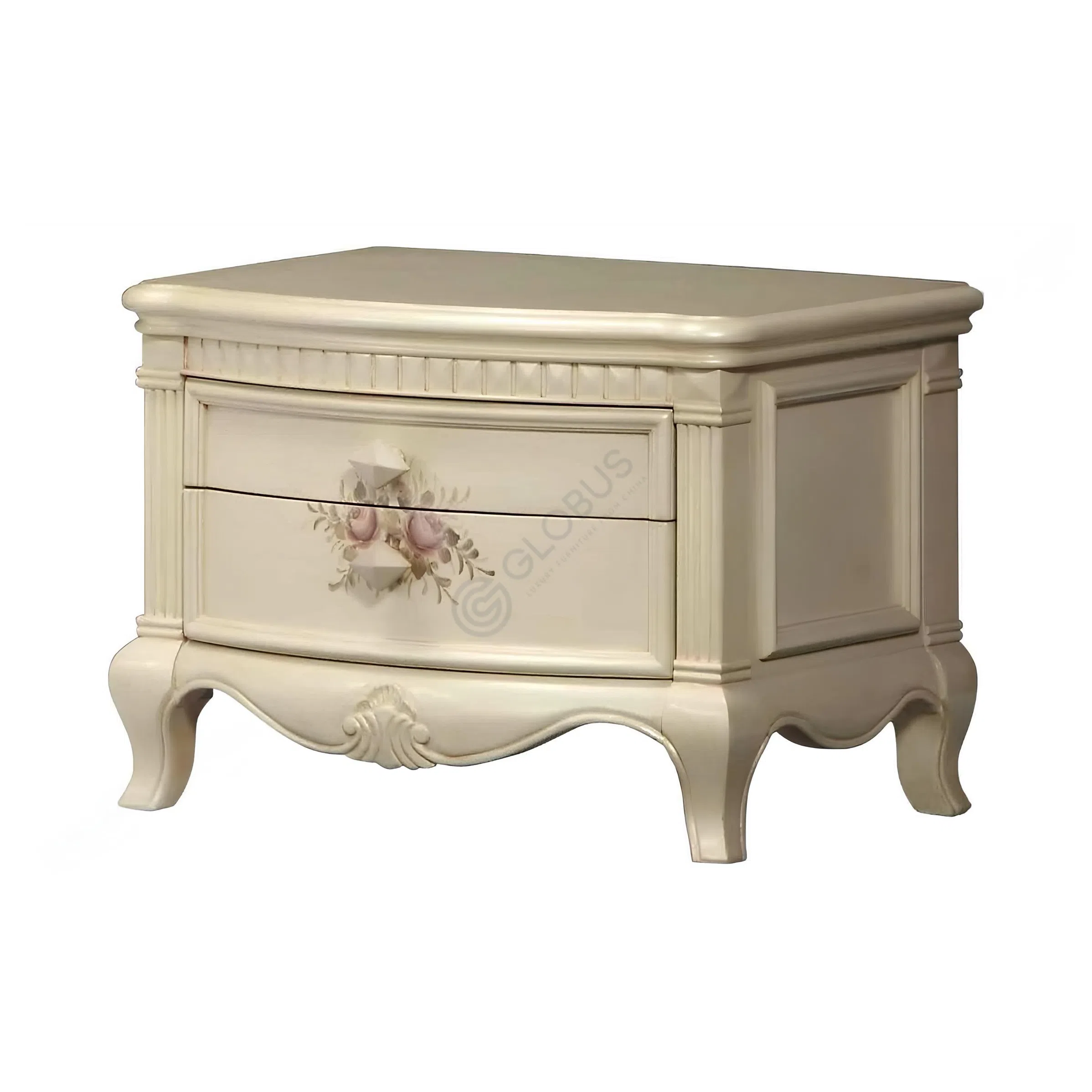 The warm, creamy finish and subtle hand-painted touches highlight the craftsmanship of the piece, making it a stylish centerpiece for any bedroom. Decorative finials on each bedpost add a subtle touch of sophistication without overwhelming the design.