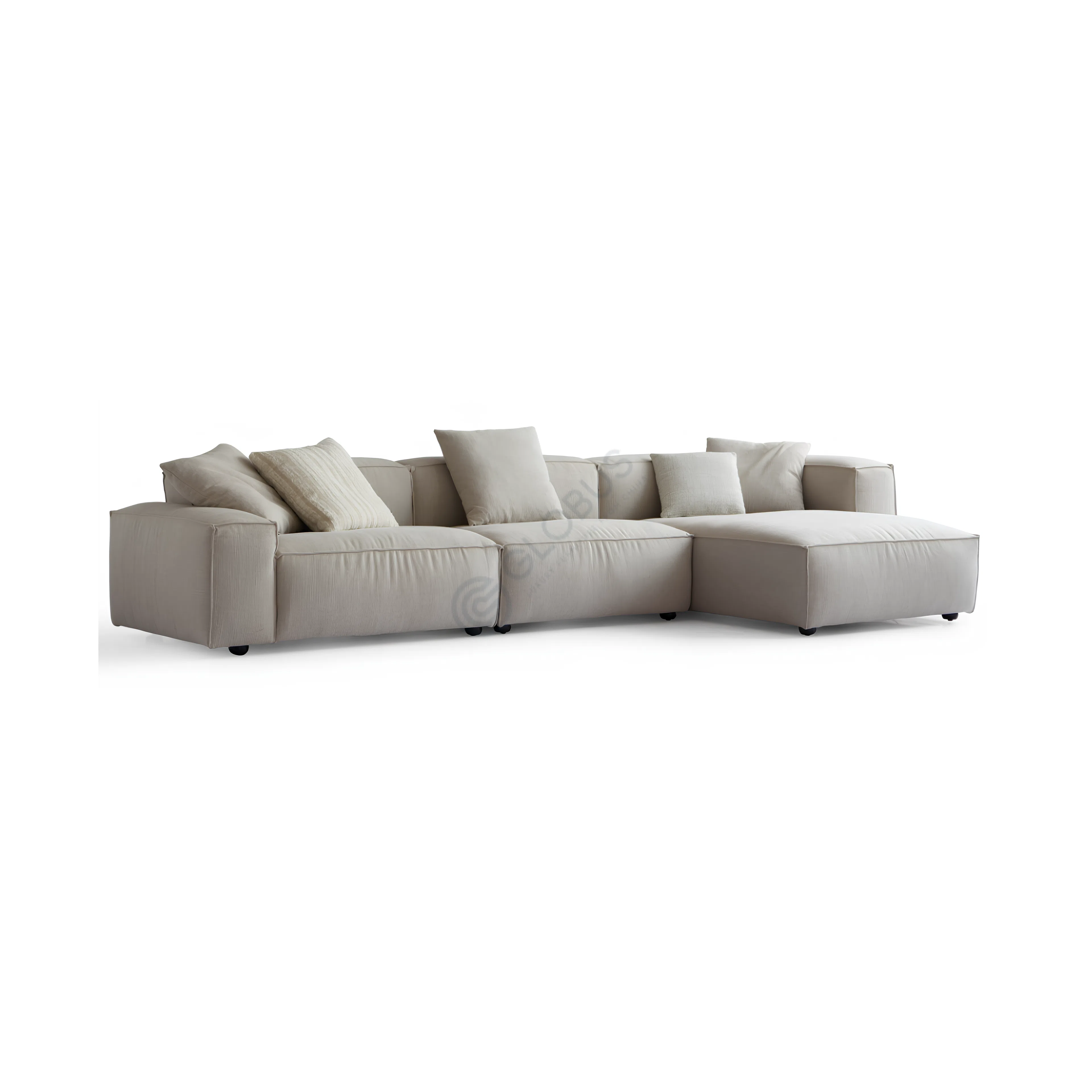 This modern armchair offers a balance of comfort and style, ideal for contemporary living spaces. Its clean lines and inviting design make it a versatile addition to any room, blending seamlessly into various décor themes. The neutral textile upholstery lends a soft, soothing aesthetic while ensuring durability and easy maintenance.