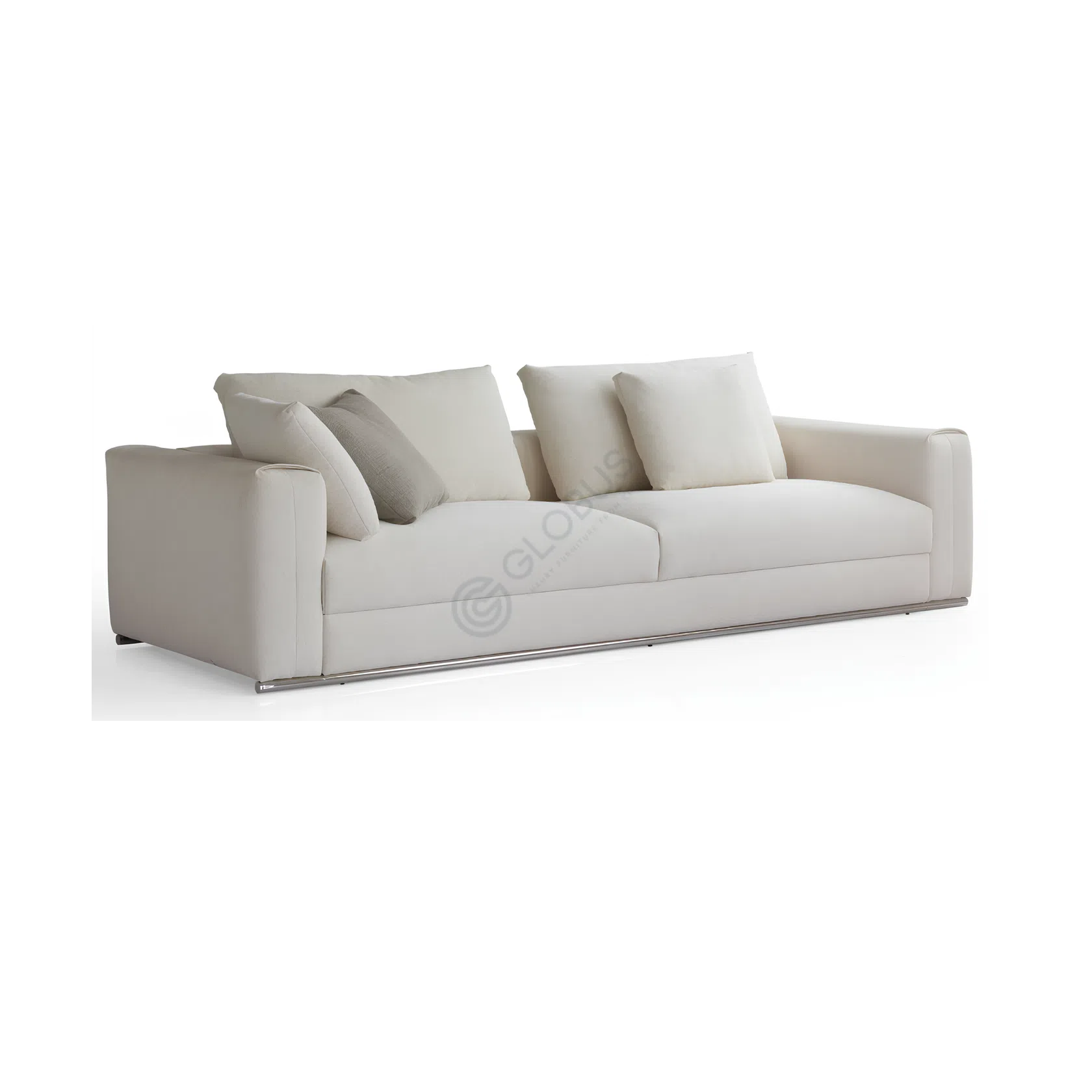 Crafted with a sturdy foundation of solid wood and plywood, this sofa ensures reliable durability and stability. The stainless steel accents at the base not only enhance its structural support but also add a subtle touch of elegance. Upholstered in a soft, high-quality textile, it offers superior comfort for hours of relaxation while maintaining a refined look.