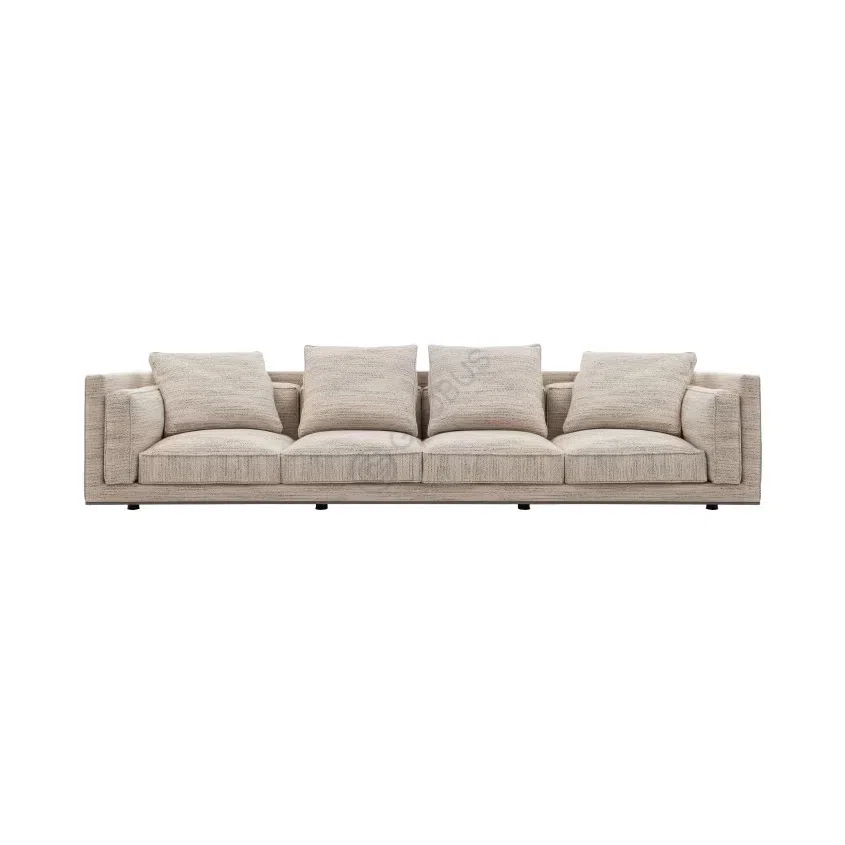 Crafted with a robust structure, the couch features a blend of solid wood and plywood, ensuring durability and long-lasting use. The addition of titanium accents enhances its modern aesthetic, giving the furniture a sleek and sophisticated edge.