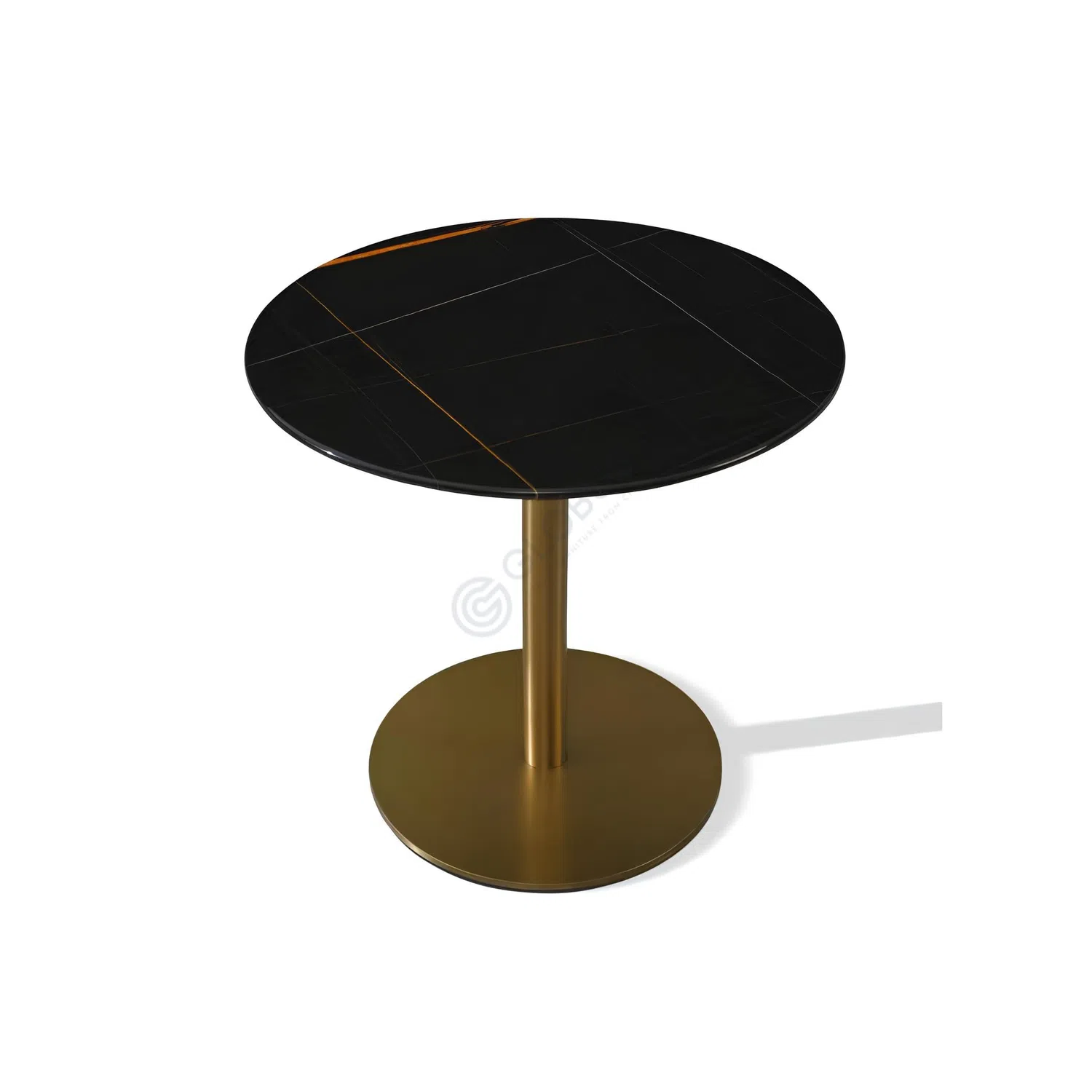 The base is crafted from polished stainless steel and consists of four cylindrical columns, adding a sculptural touch and a sense of stability without overpowering the space. The seamless combination of cool marble and reflective metal makes this table adaptable to various interior styles, blending especially well with contemporary and minimalist décor.