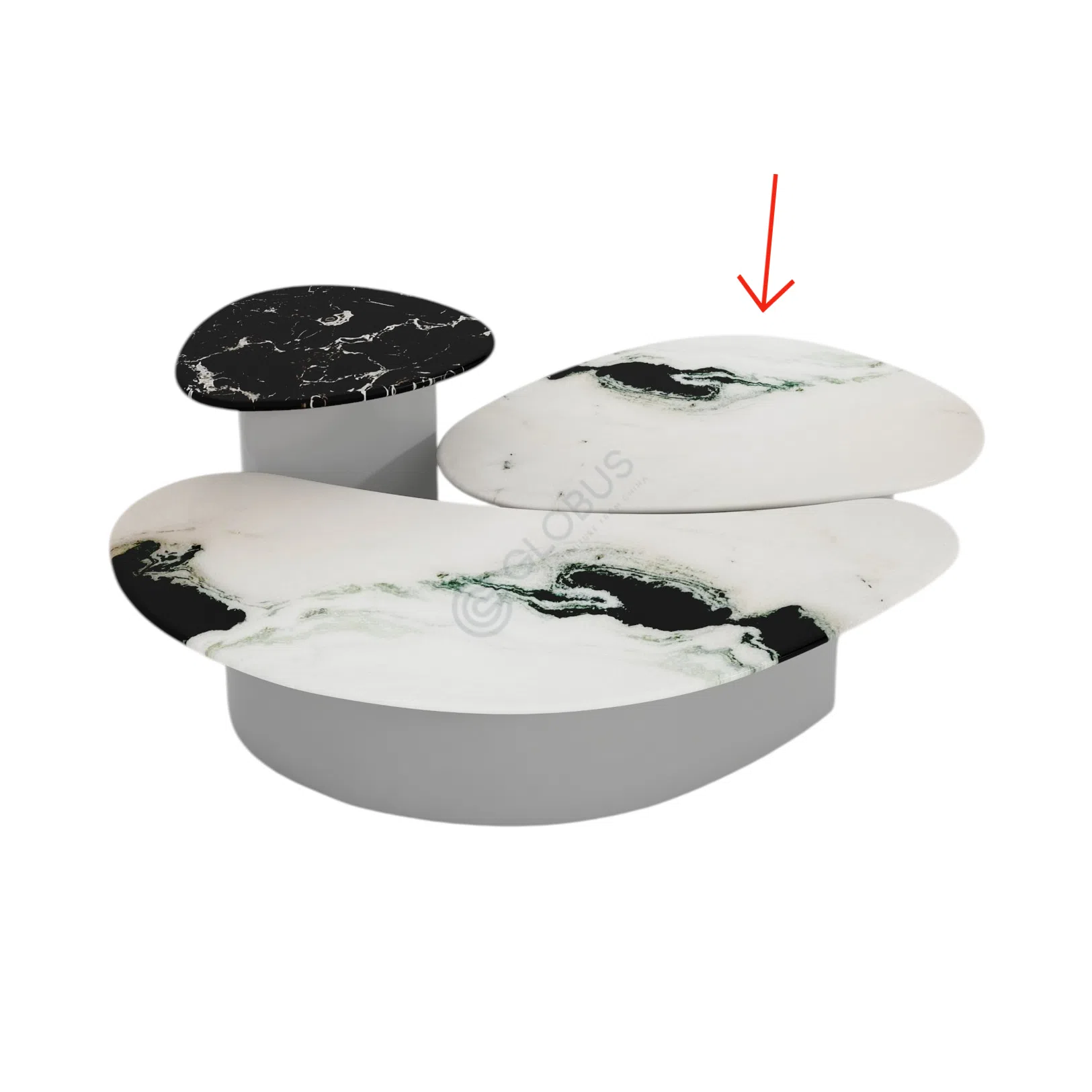 This modern side table merges contemporary design and premium materials to create a statement piece for your living room. The sleek, asymmetrical stainless steel base offers a clean and minimalist appearance, balancing durability with elegance.