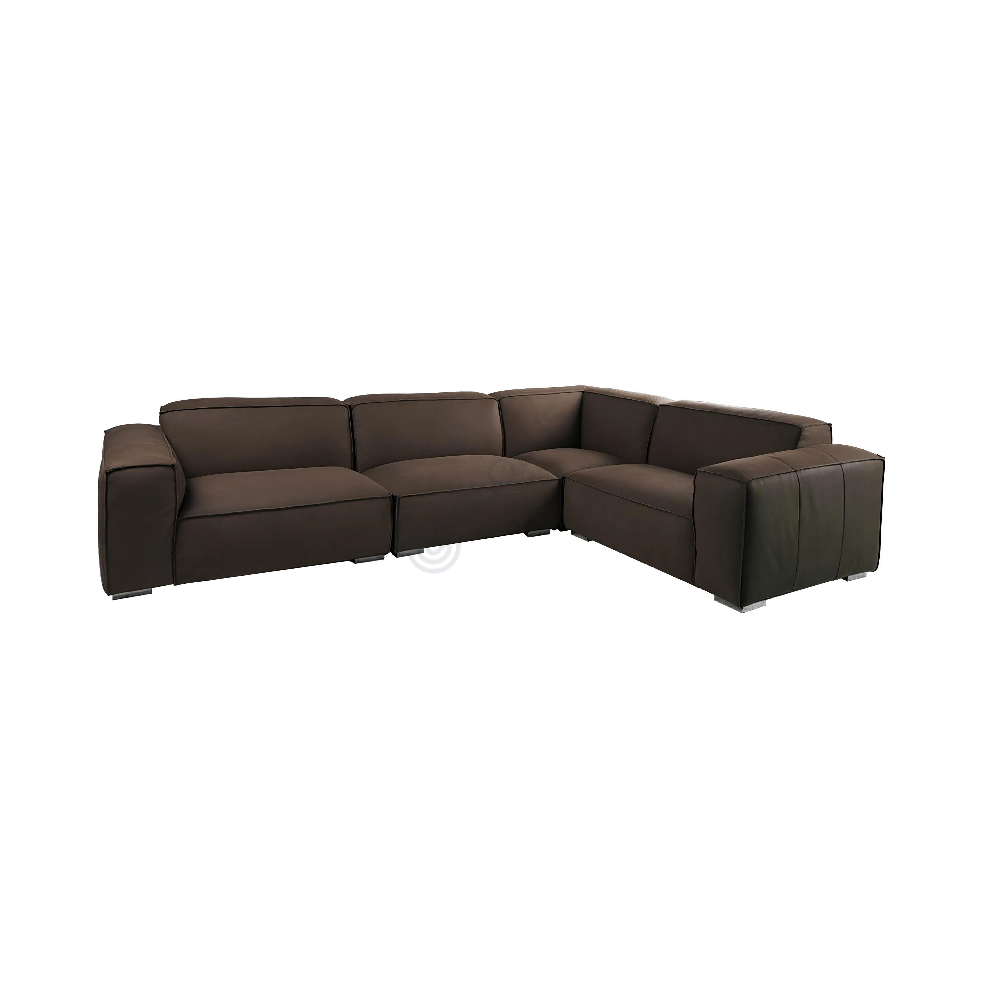 This modern sofa features wide, clean lines and a low, boxy silhouette, making it a striking choice for contemporary and loft-inspired living rooms. The rich brown leather upholstery offers a smooth and supple touch, lending sophistication and comfort to any space.