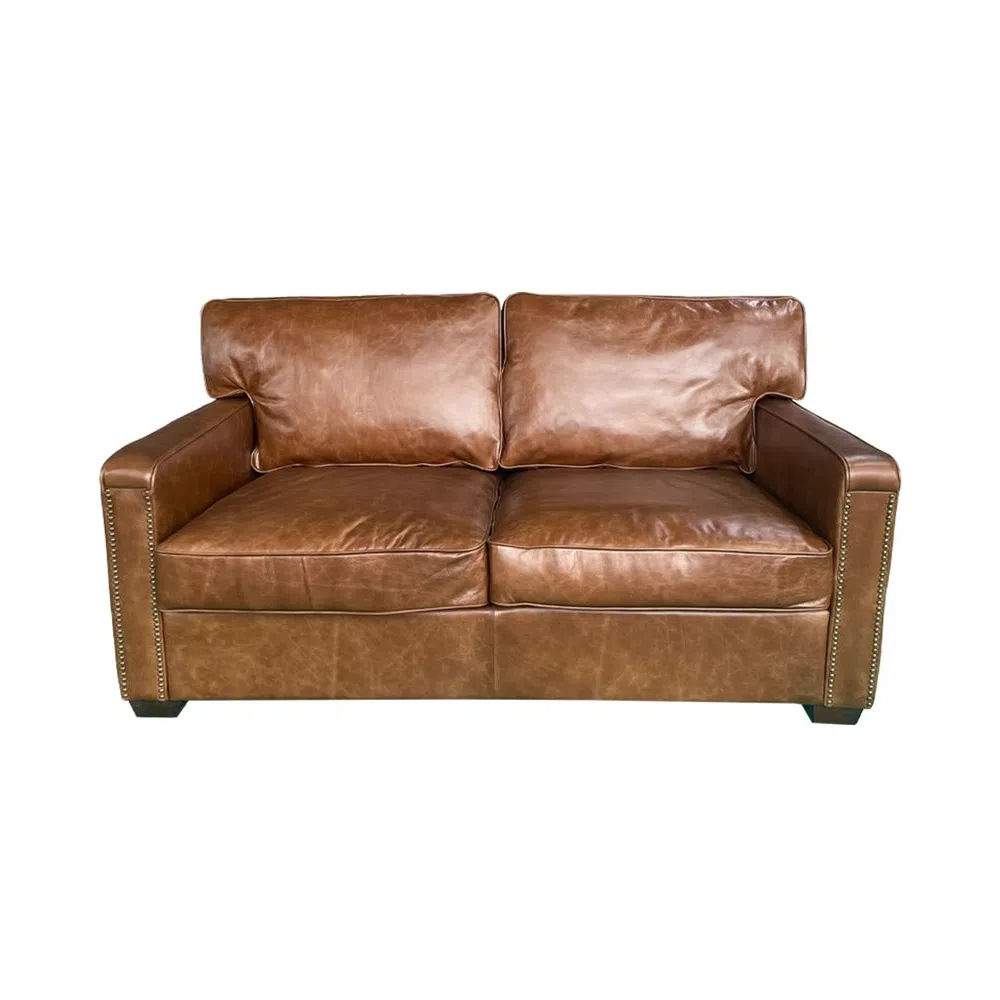 This American classic armchair combines the rich warmth of genuine leather with the enduring strength of solid wood. Carefully upholstered in supple brown leather, the seat presents a gentle sheen and soft texture that naturally develops character over time. The broad, structured arms and generously sized seat offer comfortable support for relaxed moments in the living room.