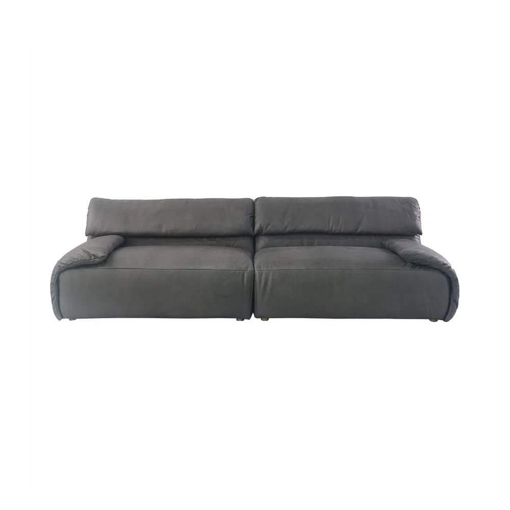 This sectional sofa combines inviting comfort with modern appeal, effortlessly complementing contemporary living spaces. Its generous proportions and low-profile silhouette create a relaxed atmosphere, while the soft leather upholstery offers a refined touch and a pleasant tactile experience.