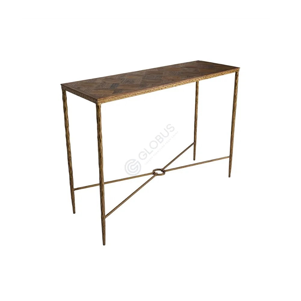 The foundation of this elegant piece is its robust iron frame. Finished with a warm, textured patina, the slender yet strong iron structure features distinct cross-bracing that adds both stability and a sophisticated visual element. The precise angles and minimalist lines exemplify contemporary design.