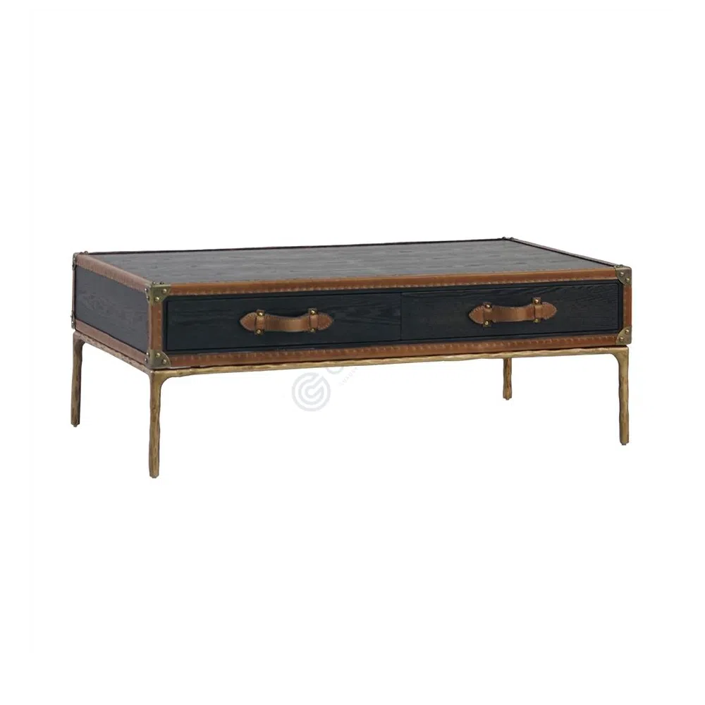 This side table offers a distinctive presence, drawing inspiration from classic luggage designs. It is a refined accent piece designed to enhance a living room interior with its unique character.