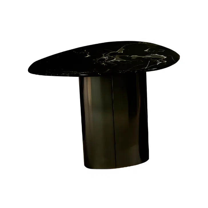 Supporting the marble top is a sleek, solid base made from high-grade stainless steel. Finished with a deep, reflective polish, the base provides a contrasting visual anchor while enhancing the table's luxurious appeal. Its minimalist silhouette complements the expressive top.