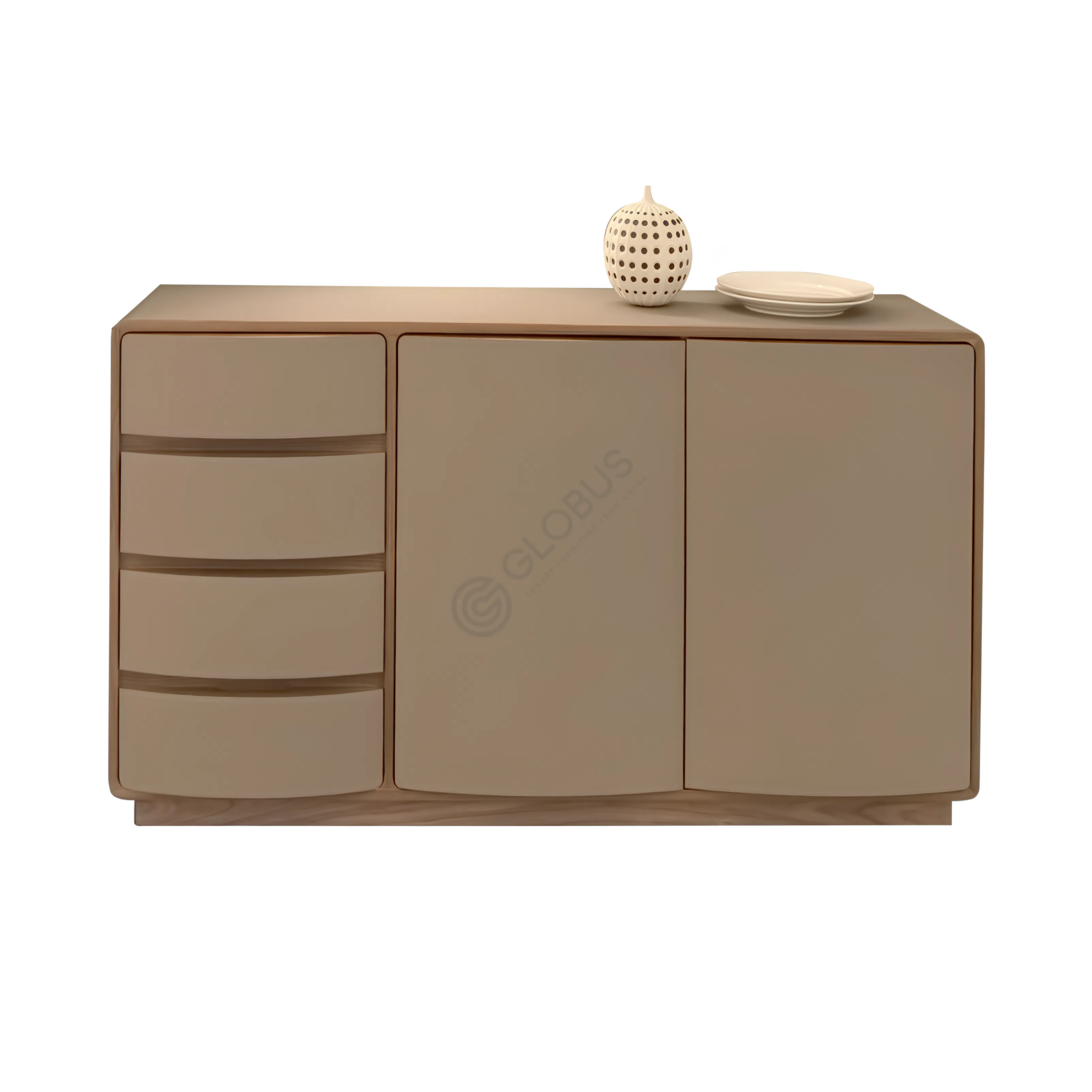 This modern dresser offers a refined storage solution, its sleek form and gentle curves presenting a beautiful addition to any living room or bedroom. It embodies a contemporary aesthetic, harmoniously blending subtle elegance with practical design.