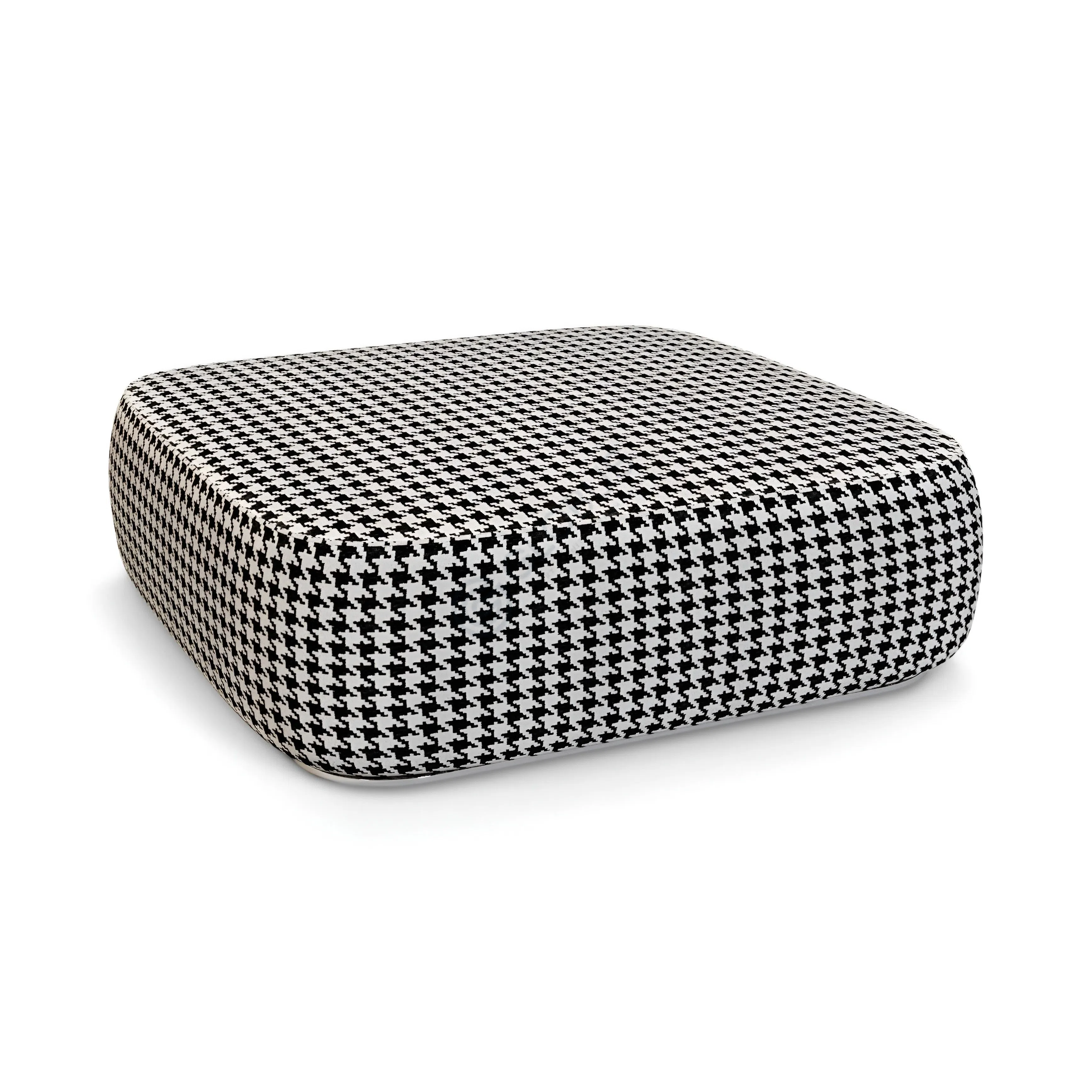 This striking pouf brings a touch of classic elegance to any contemporary space. Dressed in a timeless black and white houndstooth textile, its bold pattern immediately draws the eye, offering a sophisticated visual anchor. The gently tufted top surface adds subtle dimension and a plush feel.