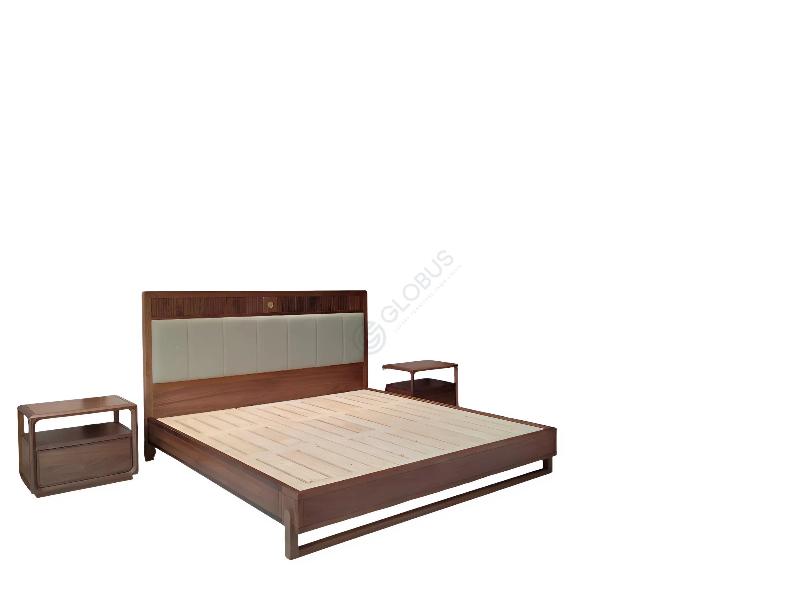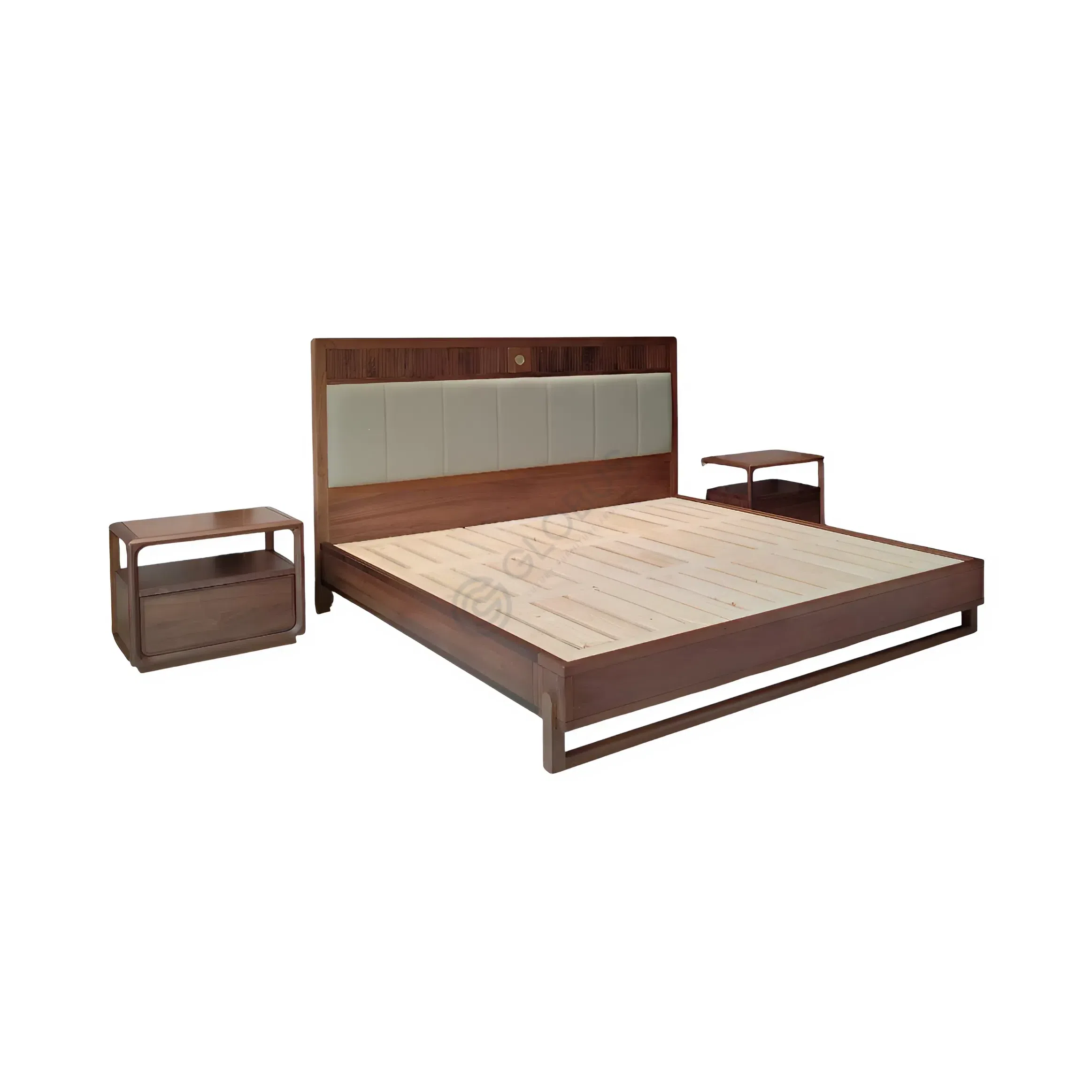 This modern bed presents a serene fusion of contemporary design and subtle Asian influence, crafted to create a tranquil bedroom sanctuary. It balances robust structure with delicate detailing, offering both comfort and sophisticated style.