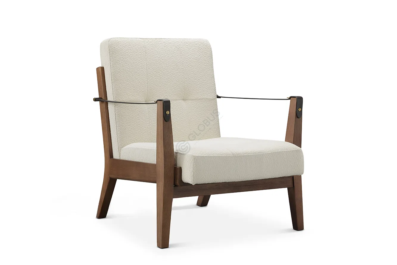 Its neutral palette and clean lines suit both dining room and kitchen settings, pairing easily with wood, stone, or metal tables. The mix of textile, leather, and wood brings a calm, modern character that complements contemporary interiors.