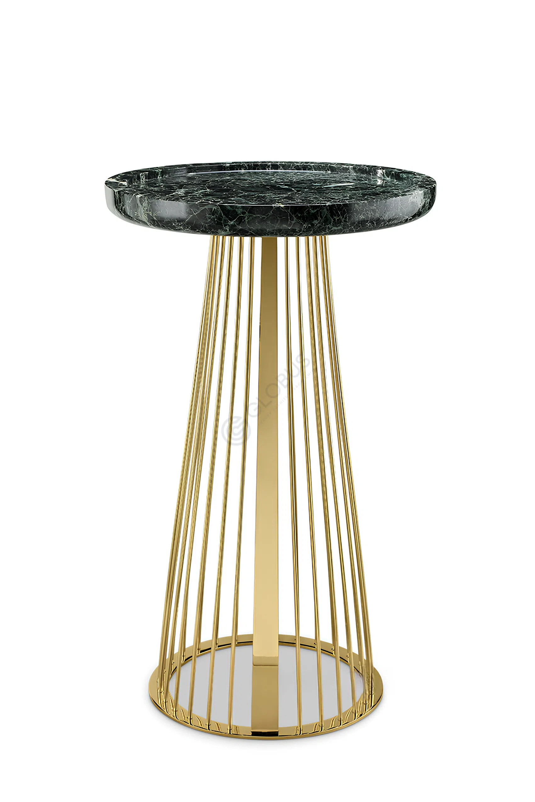 This modern bar chair presents a sophisticated design statement. Its striking silhouette is defined by a plush, round seat in rich leather, gracefully poised atop a sculptural base. The golden stainless steel rods form an elegant, tapered shape, creating a visually light yet luxurious presence.