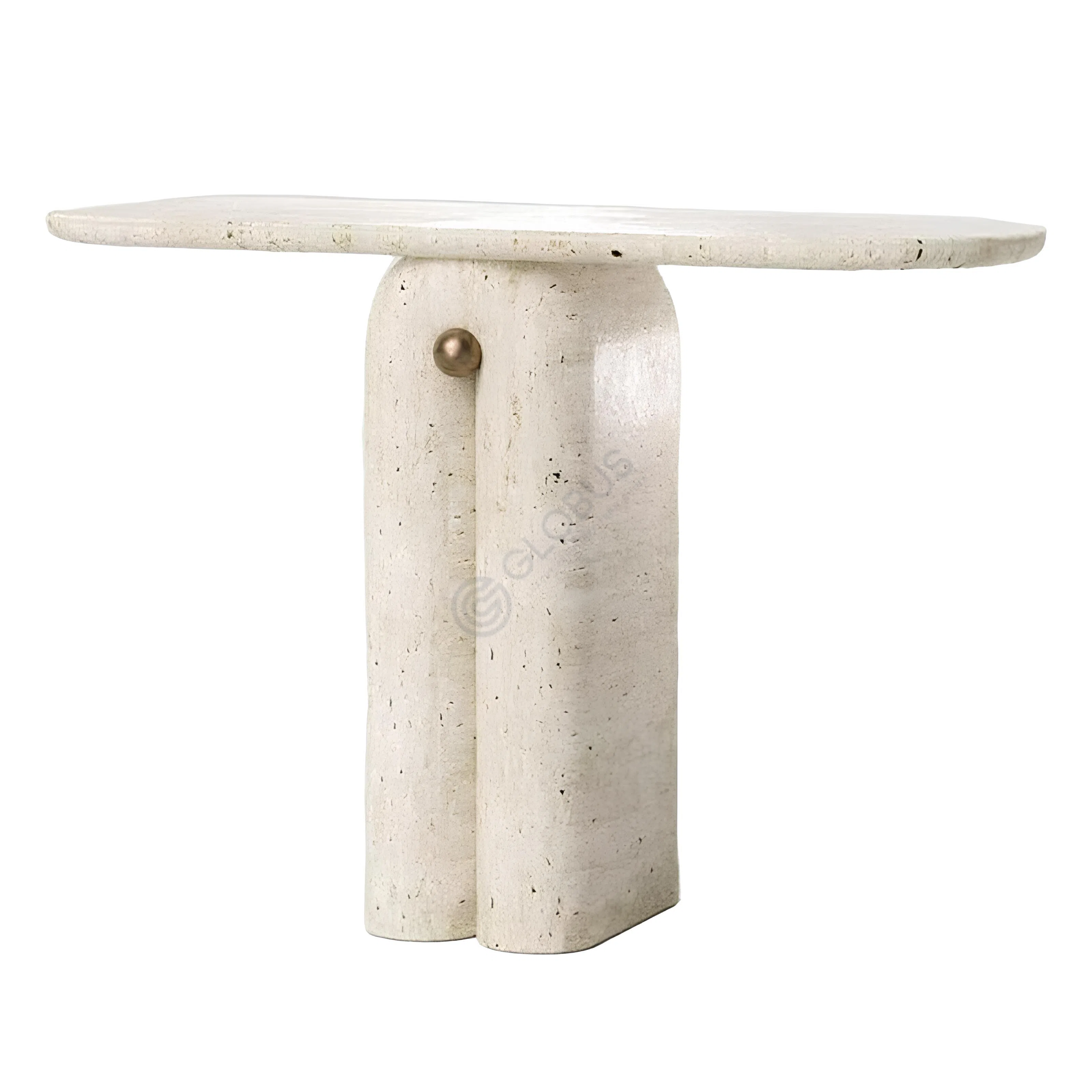 This modern dining table, crafted entirely from travertine, offers a refined presence in any home. The natural stone brings a sense of grounded elegance, with its gentle, earthy tones and unique texture highlighting the inherent beauty of the material.
